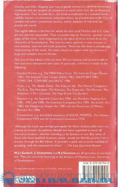 Description: Chorley and Giles' Shipping Law was originally written as a general elementary textbook with the student of commerce in mind rather than the professional legal student. Four decades later, the book is established as a standard work used by teachers in universities and polutechnics by practitioners in the City of London and other commercial centres and by students of maritime law around the world.