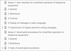 Foreword Scope Annex 1 General Purpose Equipment characteristics Annex 2 Equipment classes Annex 3 User interface for simplified operation of shipborne equipment Annex 4 Automated procedures for simplified operation in shipborne equipment