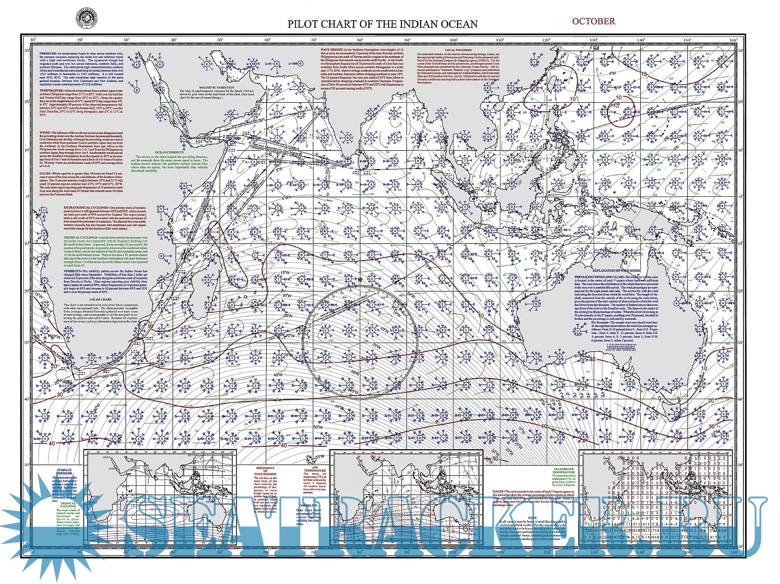 Year: 2001 Language: english Author: NGA (formerly NIMA, DMA) Genre: Other Publisher: NGA (formerly NIMA, DMA) Edition: 4th Format: PDF Quality: Scanned pages Pages count: n/a Description: The Atlas of Pilot Charts set is comprised of five volumes, each covering a specific geographic region. Each volume is an atlas of twelve pilot charts, each chart is compiled using average conditions over a single month of any given year. Pilot Charts depict averages conditions of winds, currents, temperatures, wave heights, ice limits, visibility, barometric pressure, and weather conditions. The purpose is to aid the navigator in selecting the fastest or safest routes with regards to the expected weather and ocean conditions. The charts are not intended to be used for navigation. This volume contains the Atlas of Pilot Charts of the Indian Ocean, Pub. 109, 4th Ed