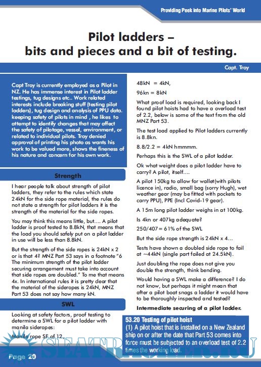 Year: 2020 Language: english Author: AIMPA Genre: Periodical (magazine) Publisher: Bhandarkar Publications Format: PDF Quality: eBook Pages count: >50 Description: Pilots have been guiding ships into and out of ports through treacherous channels safely from time immemorial. Yet, little is known to the outside world about them, their work, the critical Services they render, the challenges they face in discharging their duties and so on. The formation of AIMPA is an effort to provide a platform to the pilots who despite rendering crucial Services nd their voice is not heard in the corridors of power. Their issues keep festering posing severe threat to their life and limbs. Their work is hardly appreciated, if at all. This Journal is aimed to be the vehicle for carrying the voice of the pilots across the country. It's also aimed at sharing vital information, latest developments and events that impact their work.