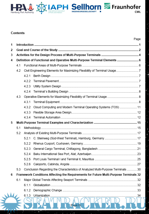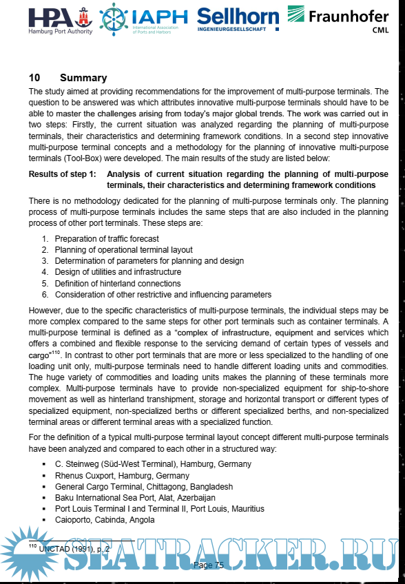Year: 2017 Language: english Author: IAPH HAMBURG Genre: Research papers Publisher: Hamburg Port Authority Edition: 1 Format: PDF Quality: eBook Pages count: 84 Description: Goal and Course of the Study The overall objective of this study is to identify optimization potentials for the restructuring of existing (brownfield) multi-purpose terminals or the planning and construction of new (greenfield) multipurpose terminals and to provide recommendations for the improvement of multi-purpose terminals considering efficient use of financial and natural resources. To achieve this overall objective, the work is carried out in two consecutive steps. Additional info: Even though not typically interesting for officers/engineers - reading this high quality paper will give you "the background" of how port is organized. It will broaden your overall knowledge of arrival to port.