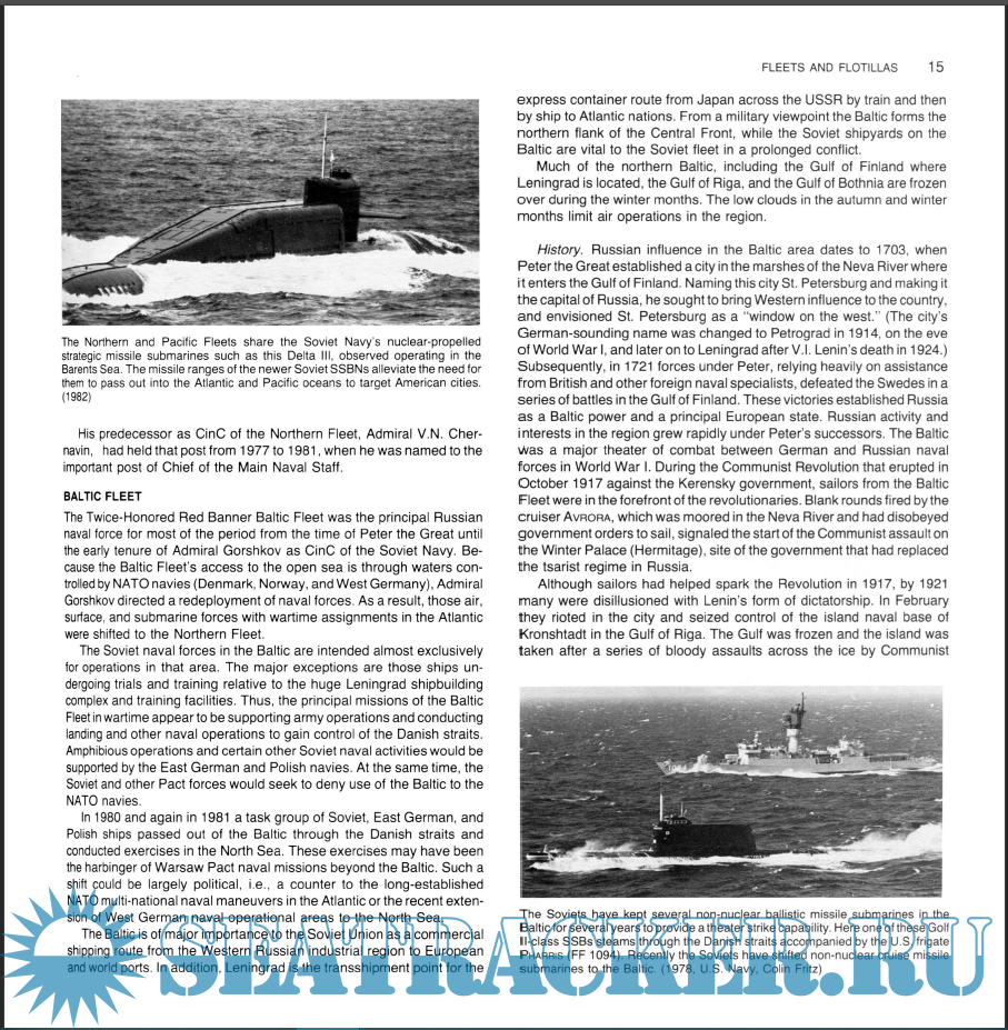 Year: 1984 Language: english Author: Norman Polmar Genre: History Publisher: Naval Institute Press Edition: 3 ISBN: 0-87021-239-7 Format: PDF Quality: eBook Pages count: 482 Description: Describes the organization and tactics of the Navy of the Soviet Union and surveys the Navy's ships, aircraft, submarines, weapons, and electronic warfare equipment.