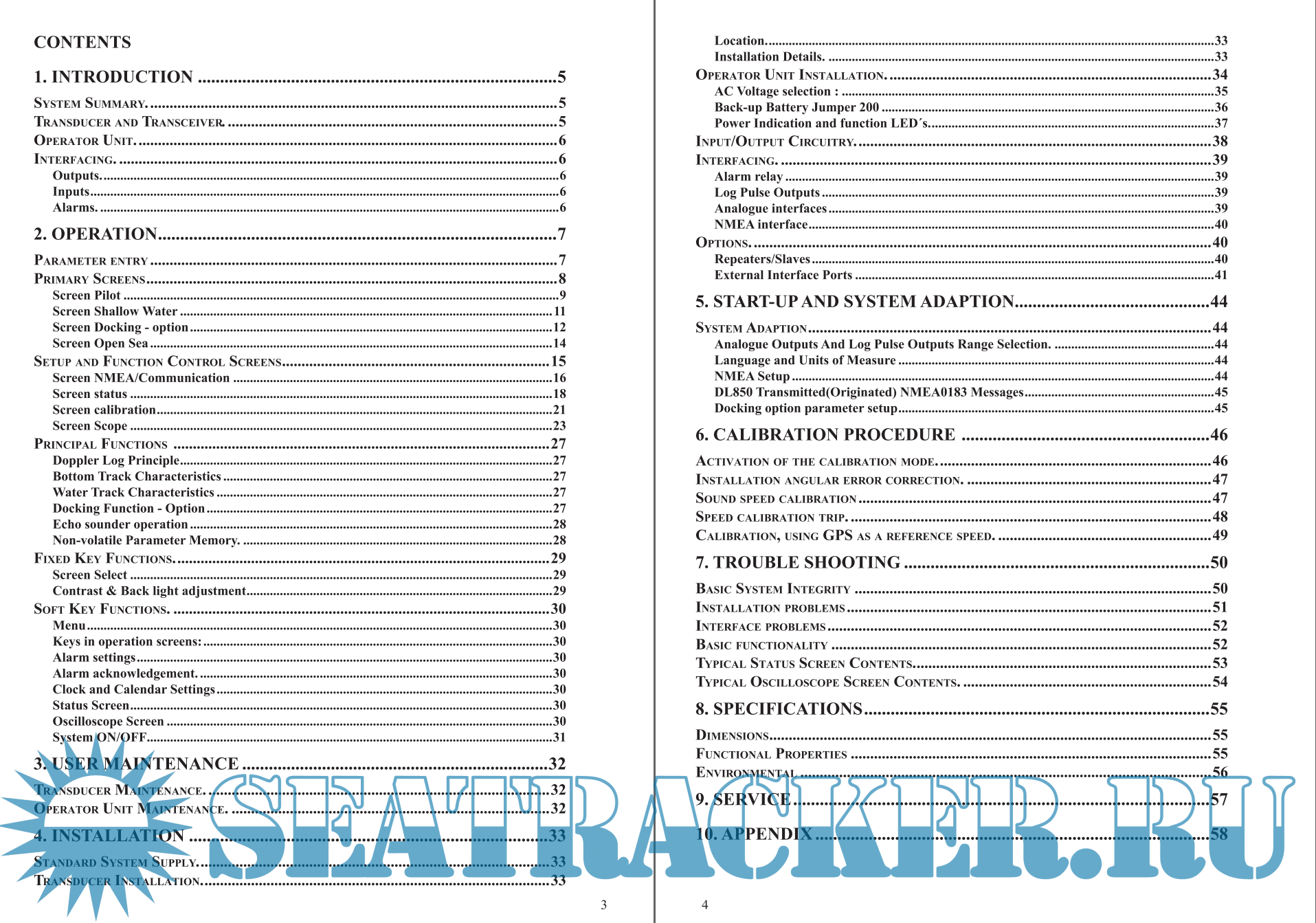 Year: 2007 Language: english Author: Sam Electronics Genre: Manual Publisher: SAM Electronics Format: PDF Quality: OCR without errors Pages count: 65 Description: DL850 is a navigation, 2 Axis Doppler Log with a large, high resolution graphic LCD. An auxiliary, shallow water echo sounder function is included. The display graphics is continuously shown on the LCD along with complete navigation details. Comprehensive interfaces are available including NMEA0183 input and output. All IMO requirements for speed logs are met or exceeded. The echo sounder feature is however is not approved for navigation