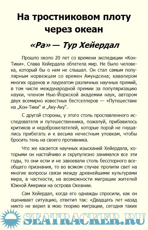 • На тростниковом плоту через океан «Ра» — Тур Хейердал