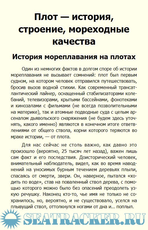 Описание: Хронологическая летопись путешествий на плотах с 1867 по 1970 год. Использованы как известные материалы, так и материалы ранее неопубликованные, из частных собраний, библиотек и музеев. Путешествия совершались на разных океанах и в различные времена года. Экипажами мореплавателей численностью от 1 до 8 человек, возрастом от 17 до 71 года. Для двоих из них это была последняя дорога их жизни. Первый плот пересекает океан. Плот "Несравненный", Джон Майке, пересекает Тихий океан. Тур Хейердал, "Кон-Тики" Тихий океан. Ален Бомбар, плот "Еретик", через Атлантику. Уиллис Уильям, через Северную Атлантику на плоту "Семь маленьких сестричек". "Эгар II", "Таити-Нуи" - Анри Воду и Эрик Бишоп через Тихий океан. Через Атлантику на "плоту "Кантута" - Эдвард Ингрис Йа. "Пот-о-Нуар" и "1000 рубежей" - Ренэ Лекомб. "Беспредельный возраст" - Уиллис Уильям, Тихий океан. "Тангароа" - Карлос Караведо. Тур Хейердал - "Ра" и "Ра II", Атлантика. От Южной Америки до Австралии, 160 дней, 10000 морских миль на плоту "Ла Бальса" - Виталь Альсар.