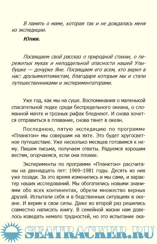 Описание: Книга болгарских мореходов, супружеской четы Юлии и Дончо Папазовых,— увлекательное описание полного опасностей перехода на обычной спасательной шлюпке через Тихий океан. Новая экспедиция отважных исследователей, в 1974 г. совершивших плавание через Атлантический океан, является продолжением серии экспериментов по программам «Планктон» и ? Интеркосмос», основная цель которых — испытать выносливость человеческого организма в экстремальных условиях, проверить, насколько планктон может быть использован в качестве пищи потерпевшими кораблекрушение, установить степень загрязнения Мирового океана.
