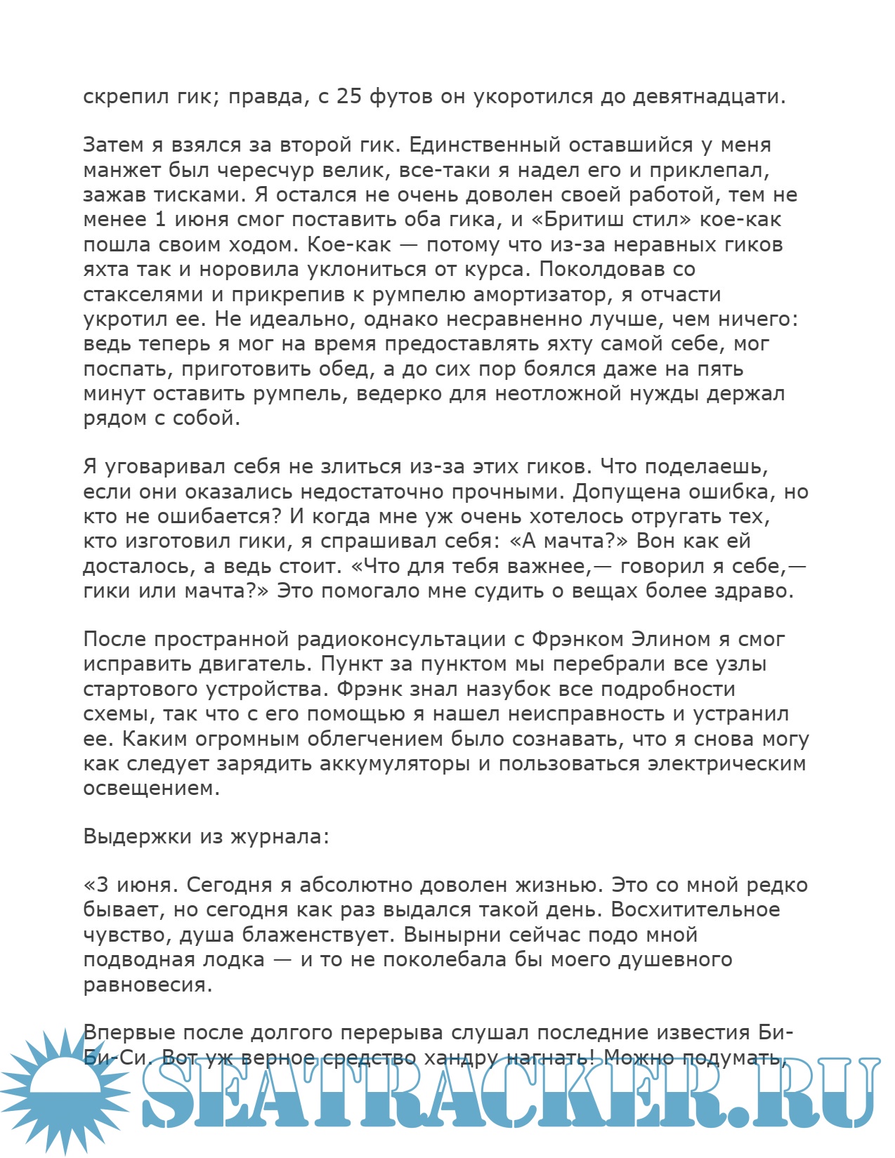 Описание: Кругосветное плавание против господствующих ветров и течений на небольшой парусной яхте «Бритиш стил» совершил за десять месяцев без заходов в порты шотландец Чей Блайт.