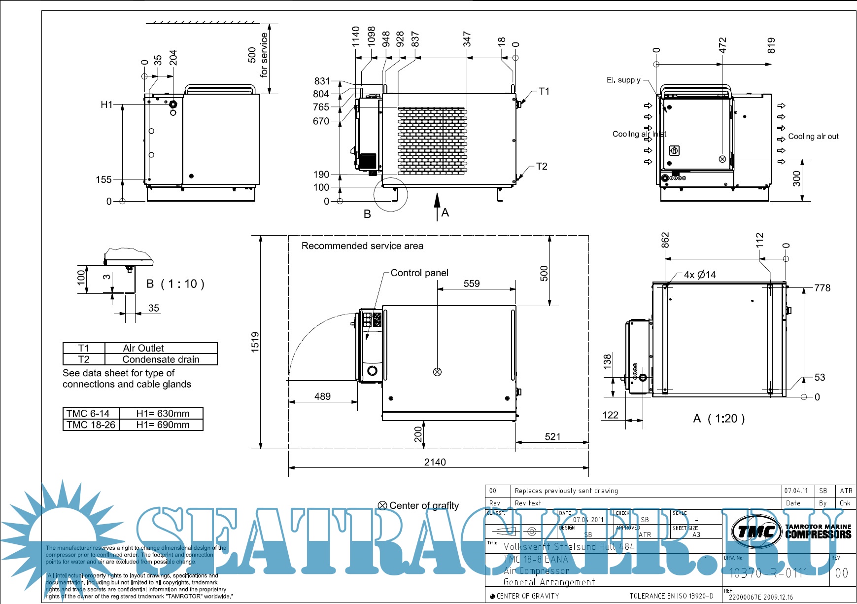 Year: 2011 Language: english Author: Tamrotor Marine Compressors AS Genre: Manual Format: PDF Quality: Scanned pages + text layer Pages count: 108 Description: Tamrotor Marine Compressors AS USER MANUAL Screw Compressor TMC 18, 21, 26 Air cooled Operation and maintenance instructions Spare parts