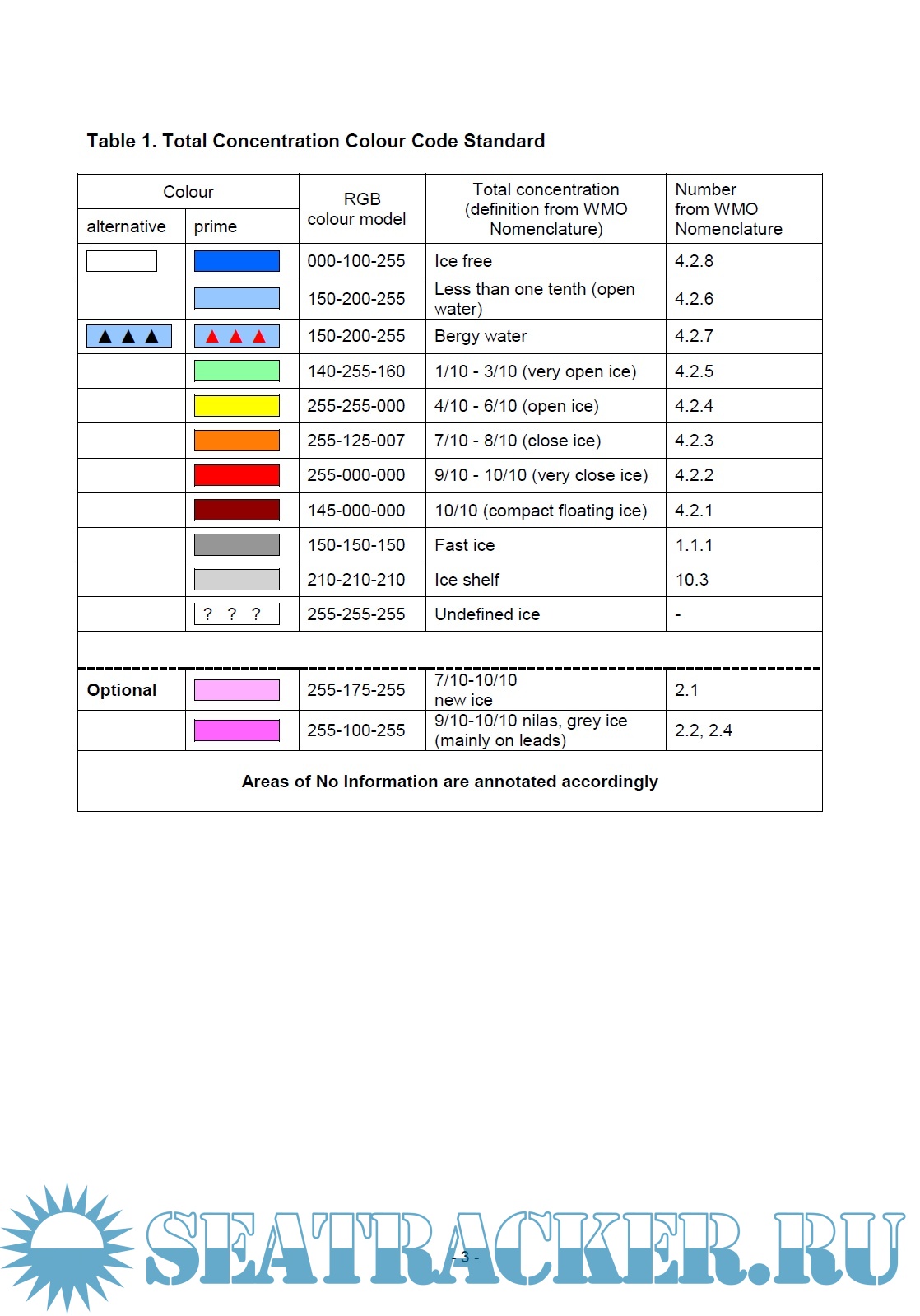 Ice Chart Colour Code Standard