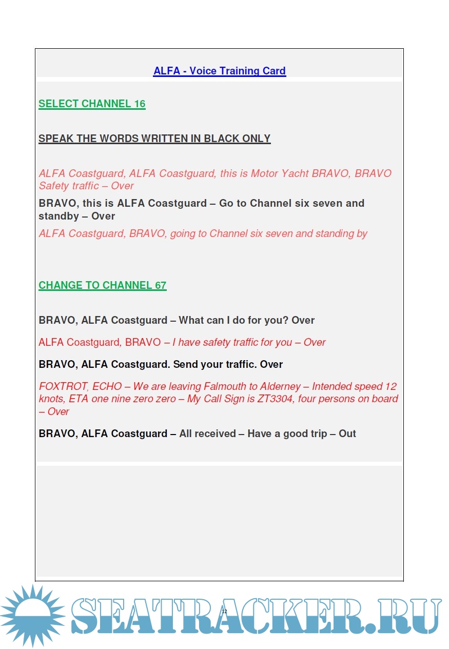 3. Practical assessment involves some tasks to carry out on a VHF DSC radio, in cooperation with another candidate, and under examinator's supervision. Tasks are briefly descripted on a situation card and on a voice training card.