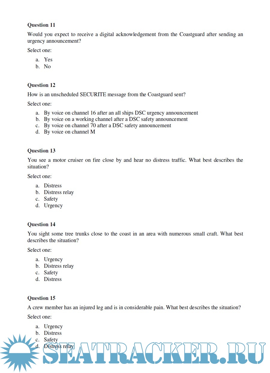 Year: 2020 Language: english Author: RYA Genre: Other Publisher: RYA Format: PDF Quality: eBook Pages count: 12 Description: The RYA Marine Radio Short Range Certificate (SRC) is the minimum qualification required to operate marine VHF radio equipment on a UK flagged vessel, for fixed and handheld equipment with and without Digital Selective Calling (DSC). It is intended for GMDSS voluntary vessels, and is equivalent to ROC (Restricted Operator Certificate). Refer to CEPT SRC syllabus, avaliable online. SRC Exam is a combination of a written theory test and practical assessment in the use of Marine VHF DSC radios. 1. Pre-exam knowledge check (online, the pass mark for the online exam is 60%). Prior to taking the actual online test, there is an opportunity to complete up to three attempts. Once one has passed the Pre-exam knowledge check, it is possible to attend the exam, wich consists of: 2. A written exam (classroom, is a closed book exam), consisting of 2 papers, A and B, with multiple choice and short written answers. The overall amount of marks (both A and B papers) is 28, and 18 marks are required to pass. Be aware that 11 marks must be achieved from Part A. 3. Practical assessment involves some tasks to carry out on a VHF DSC radio, in cooperation with another candidate, and under examinator's supervision. Tasks are briefly descripted on a situation card and on a voice training card. Additional info: 1. This document refer to an actual exam session that took place in July 2020, and it is for study and knowledge purpose only. 2. It is recommended to join a professional course taught by a qualified instructor, in order to obtain a ROC/GOC certification (SOLAS vessels), or a SRC/LRC certification (voluntary vessel). 3. Answers have been checked, anyway check youself carefully before relaying on them.