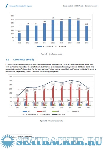 Description: This safety analysis of the European Marine Casualty Information Platform (EMCIP) data is produced in a context where container vessels have gained increasing visibility and relevance in international trade. More than 90% of the world's non-bulk cargo carried by sea makes use of containers. Consequently, container vessels have become an increasingly important part of the global logistics value chain. The analysis offers a high-level overview of the safety issues reported in the system between 2011 and 2019 and considers the remedial actions suggested to prevent similar occurrences in the future, either safety recommendations (SR) proposed by an Accident Investigative Body (AIB), or autonomously taken by the relevant parties. The deliverable consists of the following documents: