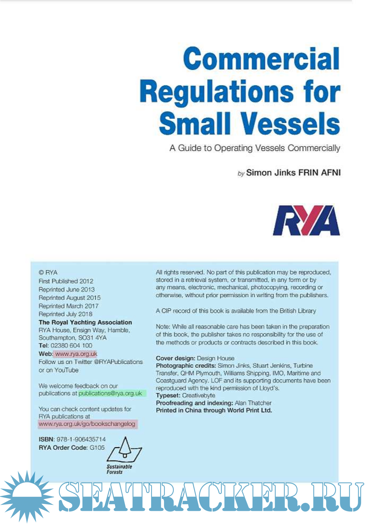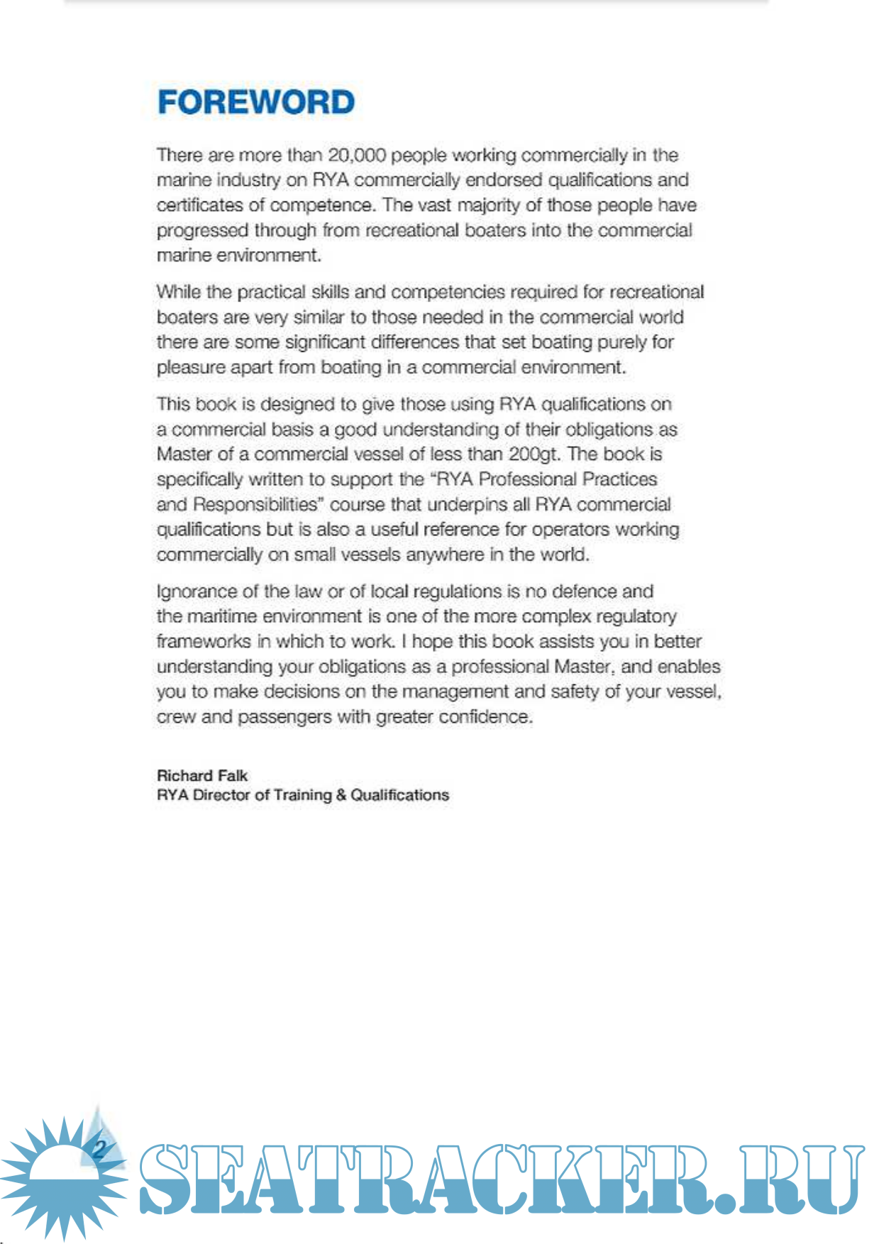 Year: 2018 Language: english Author: Simon Jinks Genre: Reference book Publisher: RYA Edition: 2018 ISBN: 978-1-906435714 Format: PDF Quality: Scanned pages Pages count: 80 Description: Anyone who ventures afloat while operating commercially needs to be aware of their responsibilities to the vessel, those around them and the environment. This book covers these responsibilities and has been split into the following three sections: - The Legal Framework - Regulation of Vessels - The Skipper & Crew Filled with essential information, it will help the reader understand and execute their duty of care, and gives the principles, guidance and techniques to make the right choices and decisions for all craft operating commercially from small RIBs up to 200gt vessels. This digital version has been enhanced with links to an online support page for further information. The book is designed to accompany the new RYA’s Professional Practices and Responsibilities course and is written by Simon Jinks, a former RYA Chief Cruising Instructor and an acknowledged authority in the field of small vessel training and safety management.