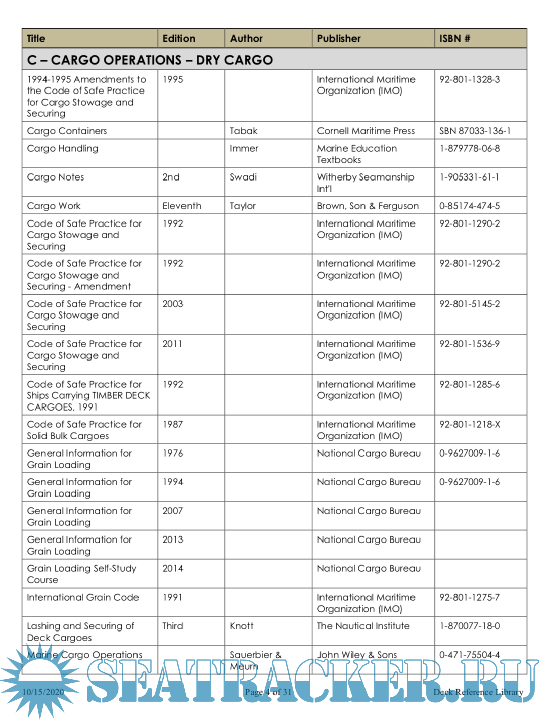 Description: The following is a list of the charts, reference publications and text books currently in use by the Deck Examination Team at the U.S. Coast Guard National Maritime Center, as of October 2020