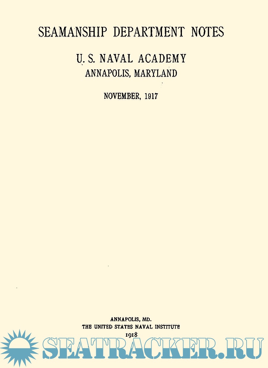 Year: 1918 Language: english Author: US Naval Academy Genre: Textbook Publisher: US Naval Academy Format: PDF Quality: Scanned pages Pages count: 183 Description: Initially conceived as an integration of textbooks of the US Naval Academy, in the form of pamphlet, these notes have become a separate text. They deal with cutter and launches handling and drill programs, mooring, anchoring, notes on properly writing the log, rules of the road, managing grounding events and much more.