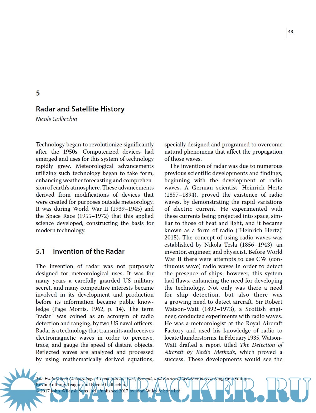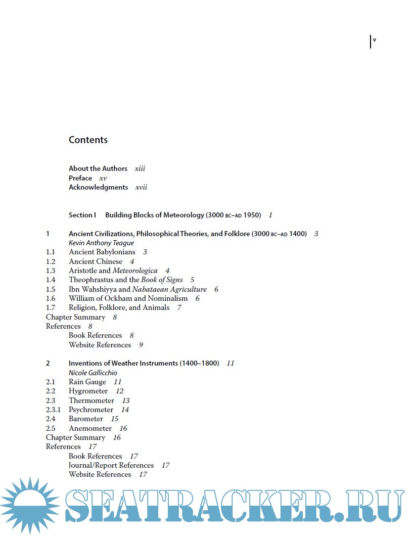 Year: 2017 Language: english Author: Kevin Anthony Teague, Nicole Gallicchio Genre: History Publisher: Wiley ISBN: 9781119136149 Format: PDF Quality: eBook Pages count: 255 Description: This book is a comprehensive history of meteorology, that explains its evolution, from its infancy in 3000 B.C., to the technology boom. The authors explore the ancient history of the first attempts to understand and predict weather, and examine the influence of the very early birth of television, computers, radar and satellites. This modern-day examination of meteorology is filled with compelling research, statistics, future paths, ideas, and suggestions. The booky includes information on forecasting technologies, organizations, governmental agencies, and world cooperative projects.