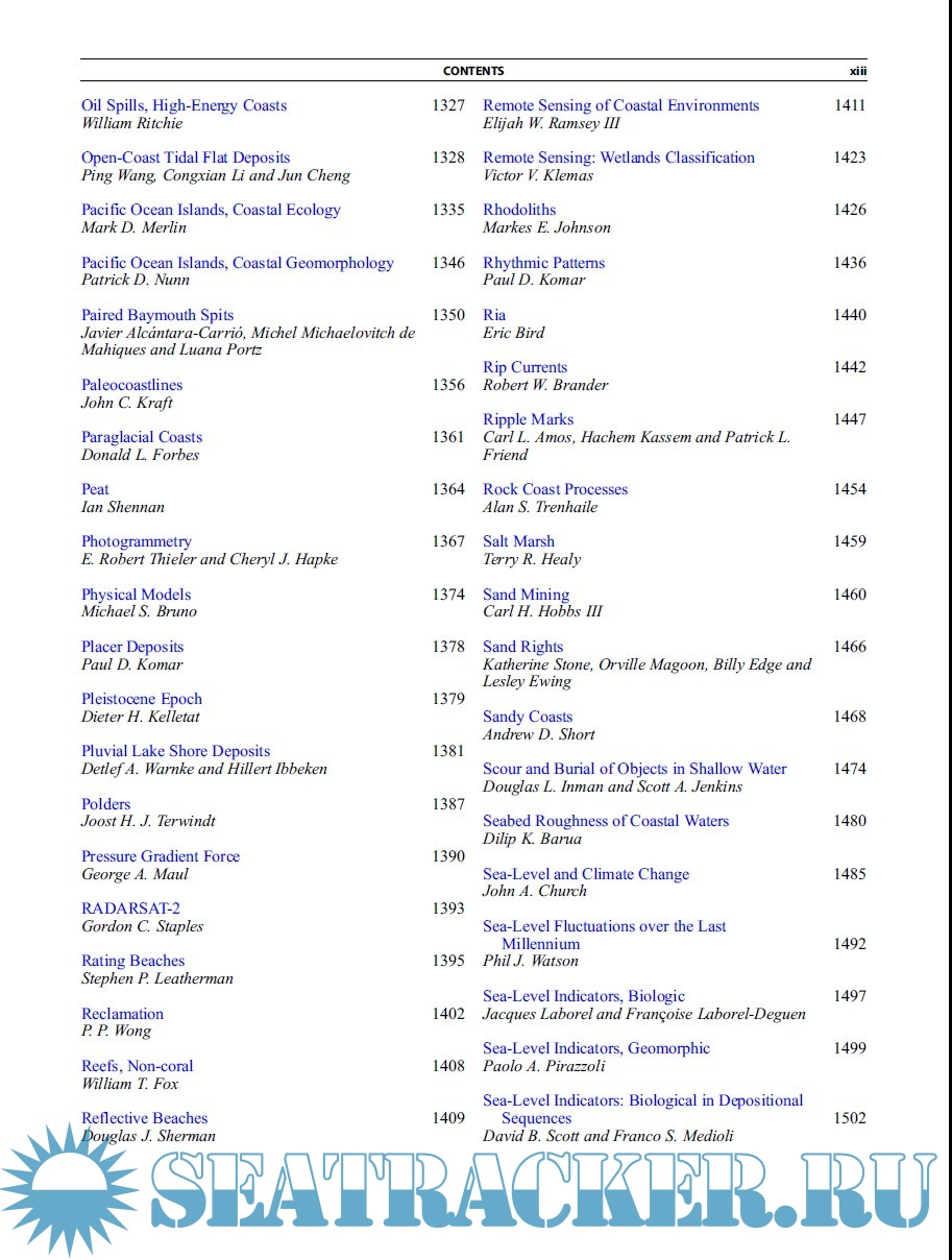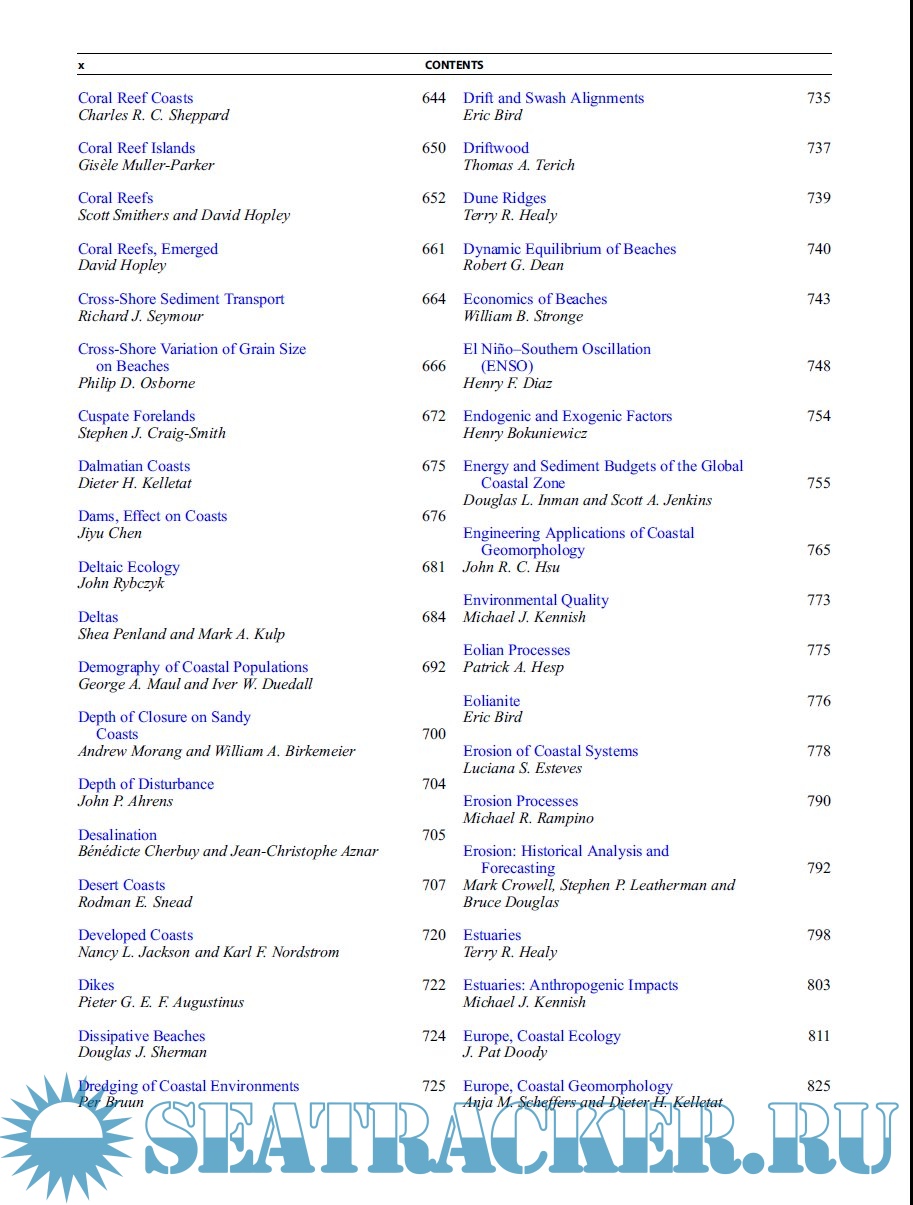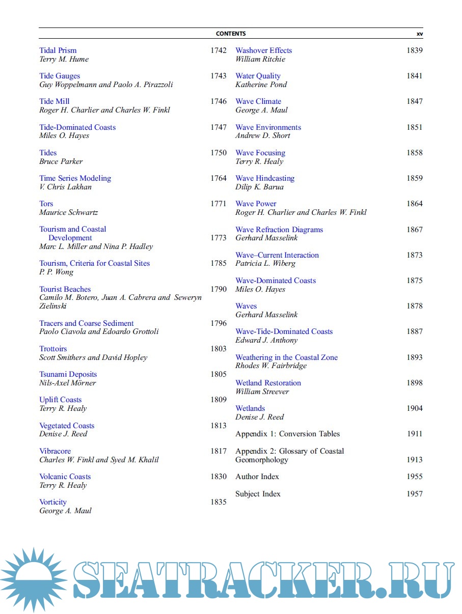 Year: 2019 Language: english Author: Various authors Genre: Encyclopedia Publisher: Springer Edition: 2nd ISBN: 978-3-319-93805-9 Format: PDF Quality: eBook Pages count: > 2000 Description: About 45% of the world’s population lives within 150 km of the coast, and coastal zone comprises about 20% of the Earth’s surface. This complex region, which functions as the interface between land and water, is studied from the point of view of the sea, land and estuaries. The approach must necessarily be multidisciplinary, as concepts, principles, and practices are often overlapped and interlaced. This volume, organized by alphabetical entries, deals with all aspects of processes, features, and areas in what is commonly referred to as the “coastal zone.” Experts from various sciences deal, in a series of essays, with atmosphere and oceanography, ecology, engineering and technology, geomorphology, climate change, erosion processes, and human activities, among others. Additional info: Editors: Charles W. Finkl, Christopher Makowski