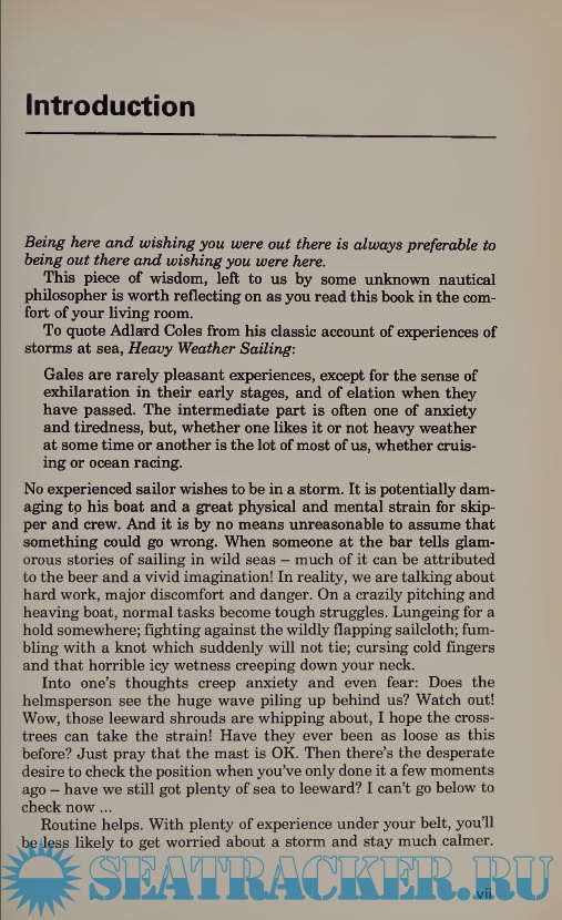 While Dietrich von Haefton's book deal with storm tactics, half of the book is devoted to the causes and effects of weather and how they affect boats. The book makes it clear that coping with storms requires the mariner to know what kind of storm is confronting him and he will be better prepared by knowing how the storm will evolve. The book deals exclusively with sail boats, but this should not diminish its value to power boaters because the common denominator is weather and sea conditions and their effect on the boat and crew. An important chapter, too often over looked in other articles and books about storms, is von Haeften's chapter on Gales in Harbour. For sheer opportunities for collision, damage and injury, nothing can surpass violent weather in a harbor crowded with unprepared and uncrewed boats.