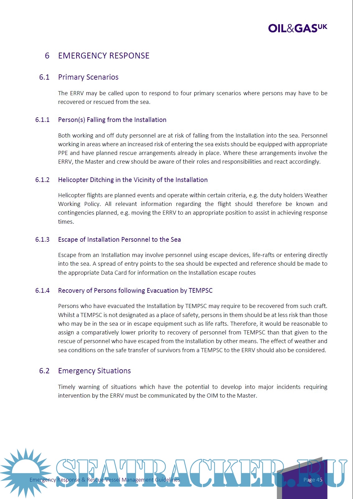 Year: 2018 Language: english Author: Oil & Gas UK Genre: Reference book Publisher: Oil & Gas UK Edition: issue 6 ISBN: 1 903 003 39 3 Format: PDF Quality: eBook Pages count: 106 Description: This guidebook intends to provide the crew members and Masters of the EERVs (Emergency Response and Rescue Vessels), as well as the Offshore Installation Managers, and all other personnel involved in the offshore operations, with the general technical guidance regarding the proper conduct of those operations as part of the recovery arrangements. Routine operations, as well as emergency response, adverse weather standards and environmental emergencies operations are detailed. This guidebook complements the Industry “Emergency Response & Rescue Vessel Survey Guidelines”.