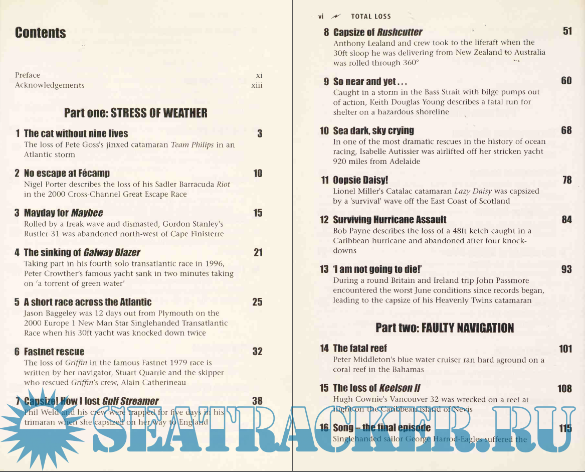 Description: Total Loss is an anthology of selected accounts by some 40 people who have survived the loss of a yacht at sea. The stories are grouped under the principle causes of loss and each is followed by an analysis of the lessons to be learned.