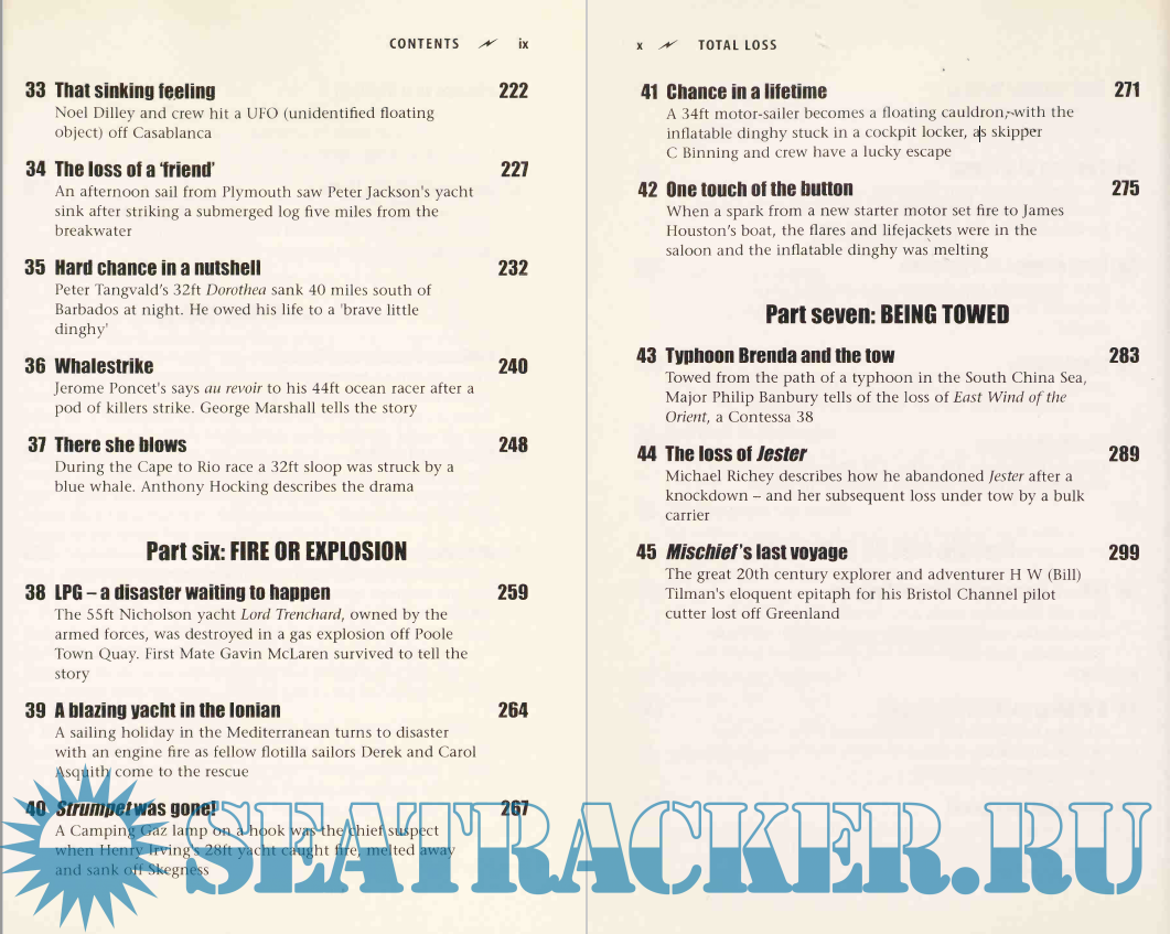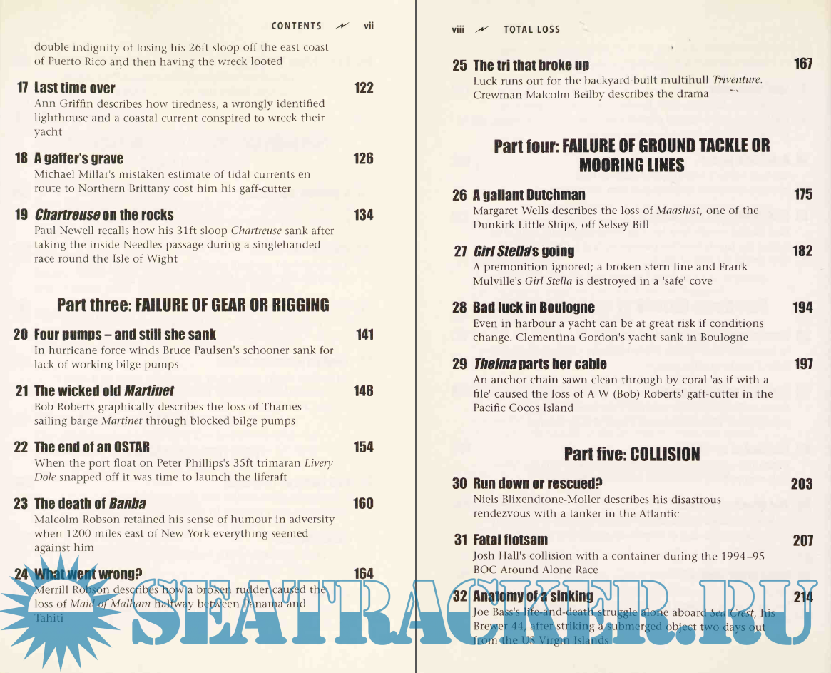 Year: 2002 Language: english Author: Paul Gelder Genre: Practical guide Publisher: Sheridan House Edition: Second ISBN: 978-1574091465 Format: PDF Quality: Scanned pages Pages count: 320 Description: Total Loss is an anthology of selected accounts by some 40 people who have survived the loss of a yacht at sea. The stories are grouped under the principle causes of loss and each is followed by an analysis of the lessons to be learned. For leisure reading, Total Loss is highly recommended. For anyone going offshore, it should be required reading. (Sailing and Yachting) About the Author Paul Gelder is the editor of Yachting Monthly and has sailed thousands of miles in a variety of boats. He has written two books on round the world yacht races, The Loneliest Race and InterSpray's Race Around the World. He is no stranger to misfortune afloat. His boat, appropriately called Phoenix, a 30-ft trimaran, was blown ashore in a gale and rebuilt after being declared a total loss by the insurers.