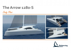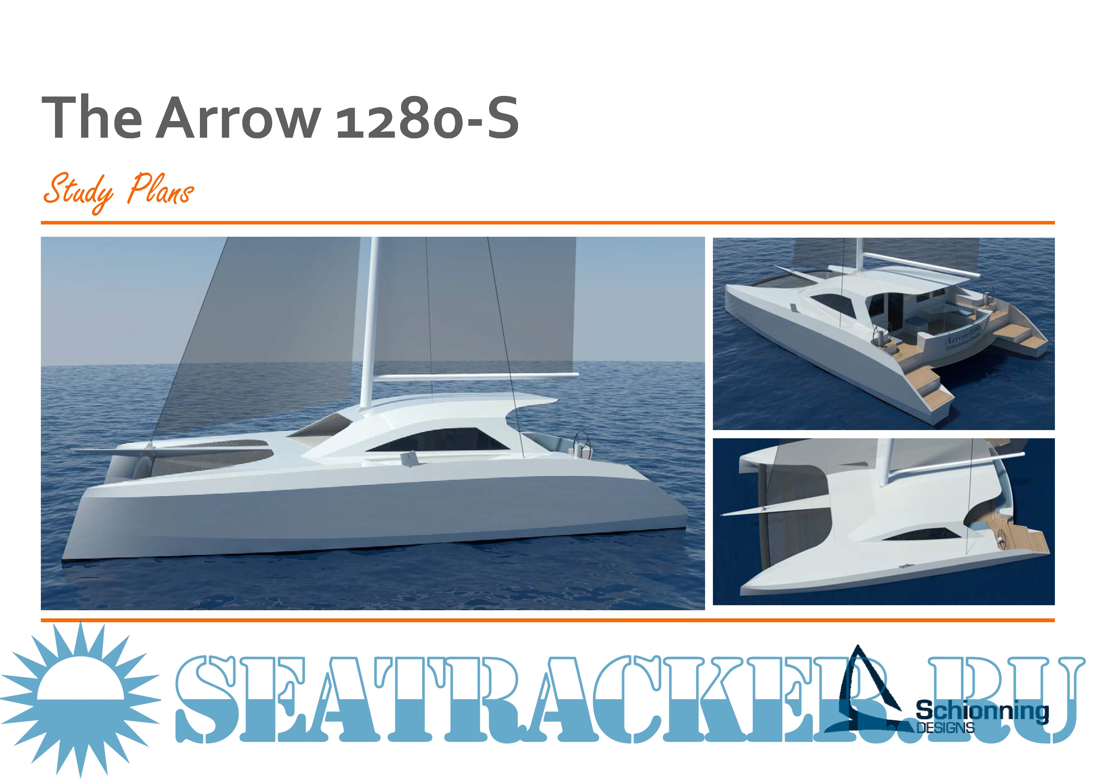 Description: Shioning Arrow 1280 S Catamaran Study Plans For hosuebuild. Contains previews of catamaran buidling process.