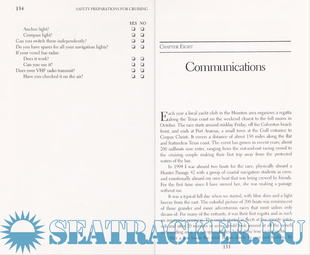 Year: 1998 Language: english Author: Jeremy R. Hood Genre: Handbook Publisher: Sheridan House Edition: First ISBN: 978-1574090222 Format: PDF Quality: Scanned pages Pages count: 278 Description: Safety Preparations for Cruising begins with a discussion of general preparations and proceeds to comprehensively cover safety material related to every facet of cruising. Topics include the structural integrity of the vessel and its potential for breakdowns, basic skills, dangerous situations and more. Each chapter begins with a real-life experience introducing the topic covered and concludes with a valuable checklist summarizing the discussion and measuring strengths and weaknesses in ourselves and our vessels. This primer on safety is essential for anyone fitting out or preparing for offshore cruising. Most sailors go to sea without prior knowledge of the cruising lifestyle and its demands. This can result in conditions ranging from the merely inefficient to the truly tragic. In Safety Preparations For Cruising, Jeremy Hood utilizes his years of personal experience to teach safety measures and prudent seamanship to would-be cruisers so they can set out on a vessel designed or altered with their well-being in mind, aware of potential risks, familiar with possible solutions, and possessing increased self-reliance with which to minimize or resolve problems. The many and essential topics include "preparing yourself"; hull and deck; spars and rigging; engines, transmissions and propellers; steering; safety below deck; navigation; communications; safety harnesses and PFDs; heavy weather; "man overboard"; taking on water; abandoning ship; ground tackle; going aground; medical emergencies; fire; spares and repairs; and "before you set off". No sea-going novice one should set off without first studying Safety Preparations For Cruising. -- Midwest Book Review No sea-going novice should set off without first studying Safety Preparations for Cruising. --The Midwest Book Review, May 1997 About the Author Jeremy R. Hood has sailed over 30,000 ocean miles as skipper, including two Atlantic crossings. Born in England, he got his early sailing experience around the North Sea and in the English Channel. He now owns a yacht brokerage company, Blue Water Cruising, in Clear Lake Shores, Texas, and does consulting for offshore sailors. An experienced delivery skipper, he also teaches navigation and seamanship, and lectures at Cruising World/West Marine Safety at Sea Seminars.
