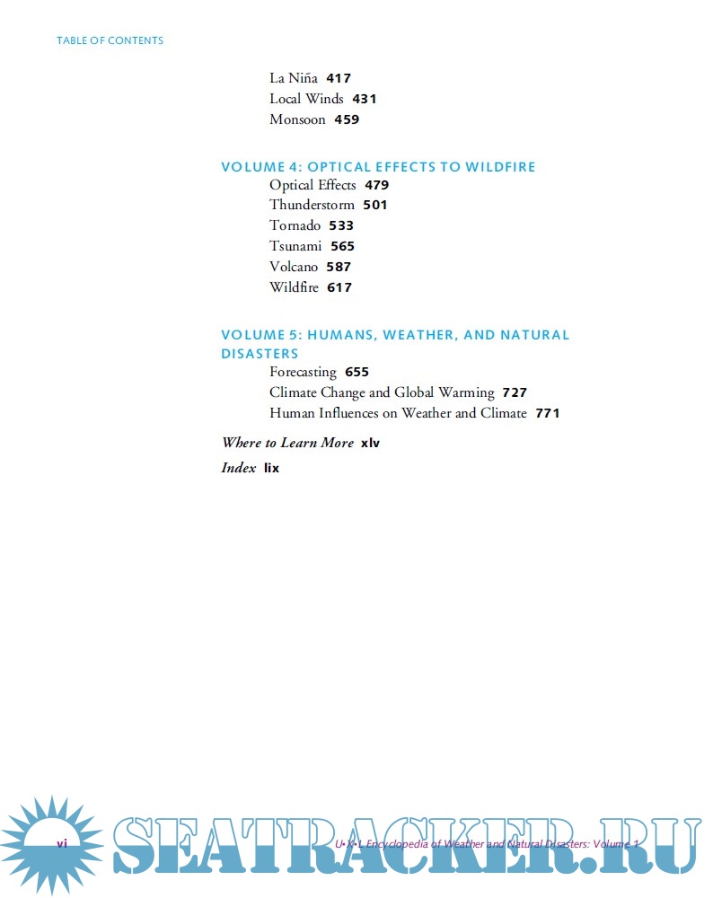 - Volume 4 wraps up the alphabetically arranged chapters with six more chapters: Optical Effects, Thunderstorm, Tornado, Tsunami,