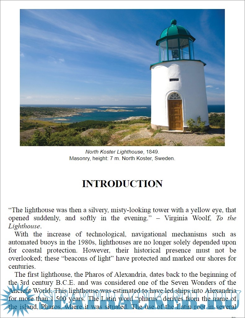 Description: Lighthouses has guided sailors since antiquity. Due to the increasing development of modern navigational aids, these lone sentinels no longer have the crucial importance they once had. But they retain a role that testifies the beauty and the place they hold in our cultural heritage. This book presents some of the most spectacular lighthouses in the world. Content is divided by continents, illustrated by pictures and briefly described.