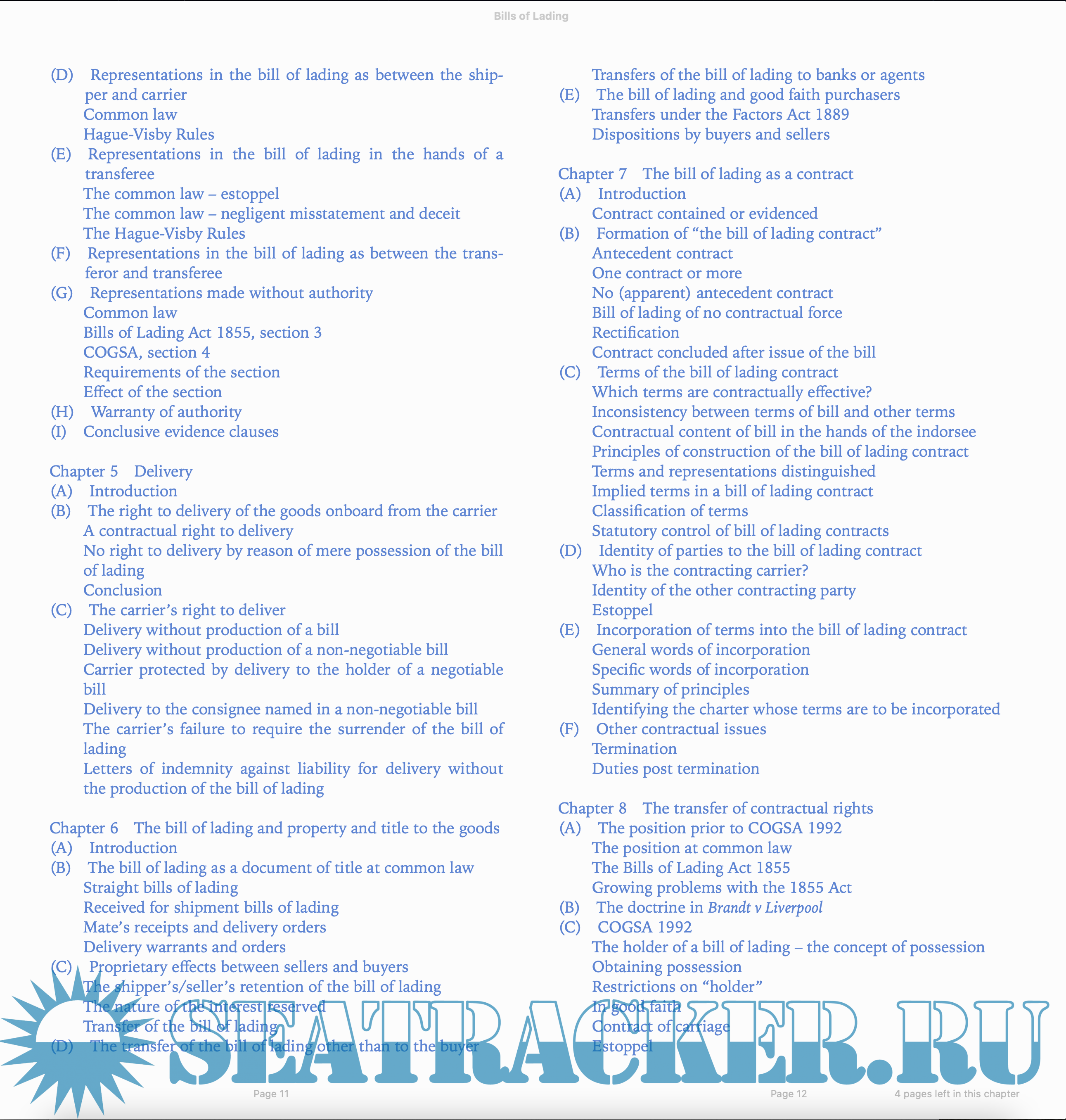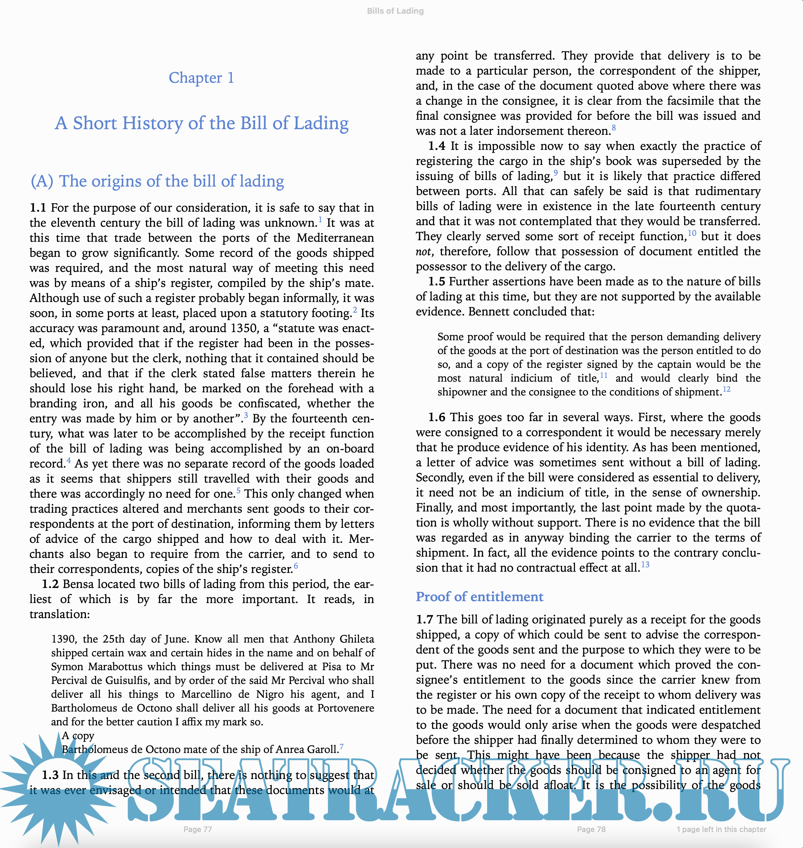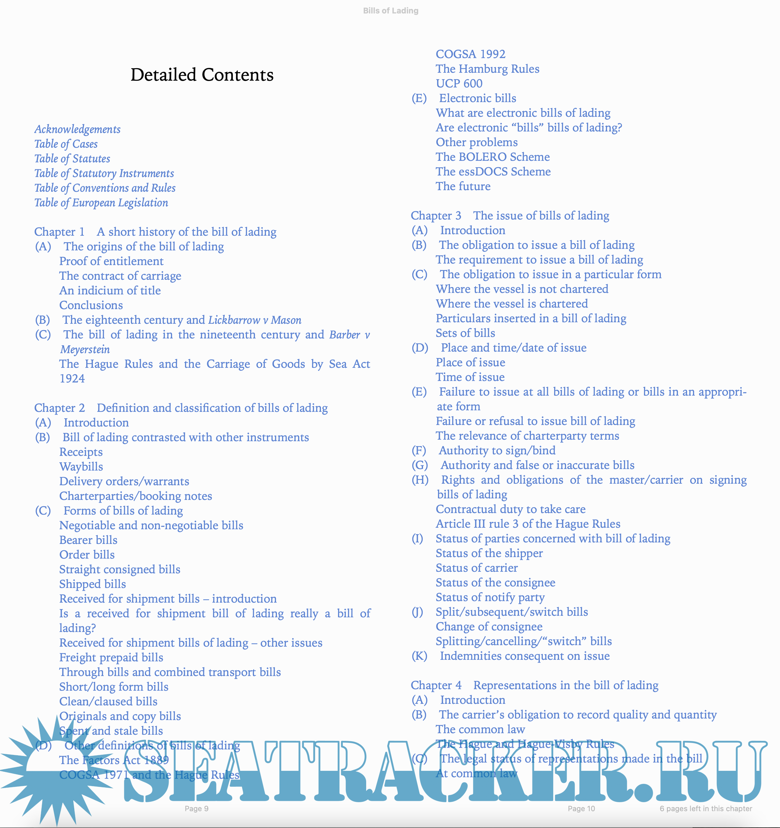 Description: “The common law relating to bills of lading has evolved over many centuries; and as in any such evolutionary process there have been periods of rapid change and periods of relative quiet. The nine years since the first edition of this book constitute a relatively undramatic, if busy period, with many decisions handed down but few likely to have had the maritime lawyer or shipowner choking over their cornflakes.