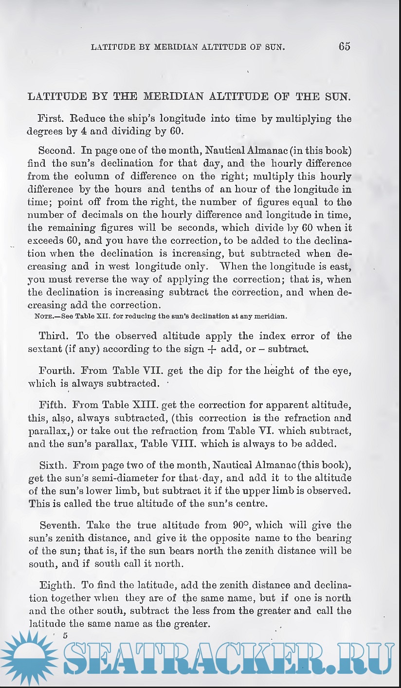 Year: 1878 Language: english Author: Edmund McNevin Genre: Manual Publisher: A. L. Bancroft & Co. Format: PDF Quality: Scanned pages + text layer Pages count: 360 Description: This manual has been written by a twenty years experienced merchant marine master, and has been written for seamen, instead of scholars or scientists. It is clearly aimed to help the navigator to find quickly and accurately his position at sea in the simplest possible way, and by choiche avoids all other methods of determining latitude and longitude, either difficult or poorly accurate, such as lunar observations. Some useful and, for the time, innovative methods are given. The author calls out the student's special attention to the system of finding simultaneously latitude and longitude by double altitude, and to a leeway indicator (a diagram is given). For finding latitude by star altitudes refers to the American Ephemeris for the declination of the fixed stars instead of to the English tables, with the notation of the former. Content well detail topics.