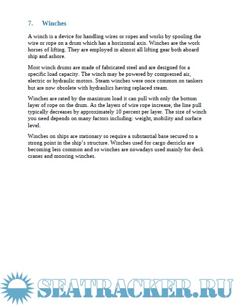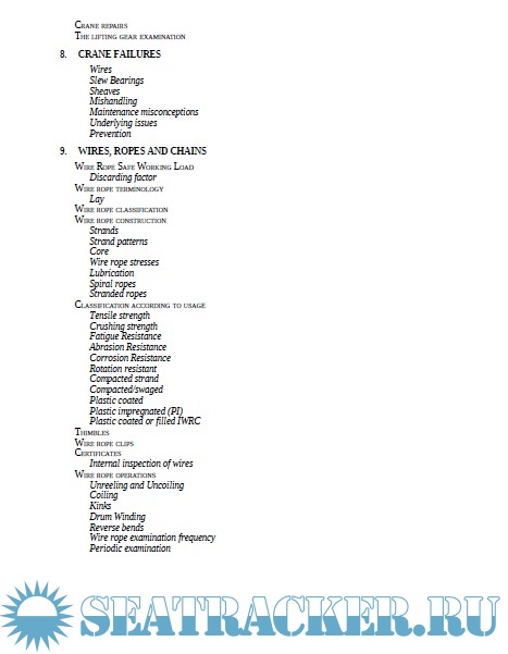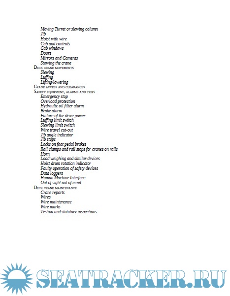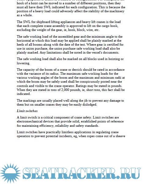 Lifting appliances on board ship, particularly ship’s cranes, are critical to a vessel earning freight. A ship is only earning money, ie, freight, when carrying cargo at sea. If the deck cranes are out of action in port the vessel will have downtime which in turn reduces the vessel’s earning capacity. For this reason, and the safety of the crew, ship’s cranes should be well maintained, usually whilst at sea, to reduce the possibility of port downtime. These aspects are covered in detail.
