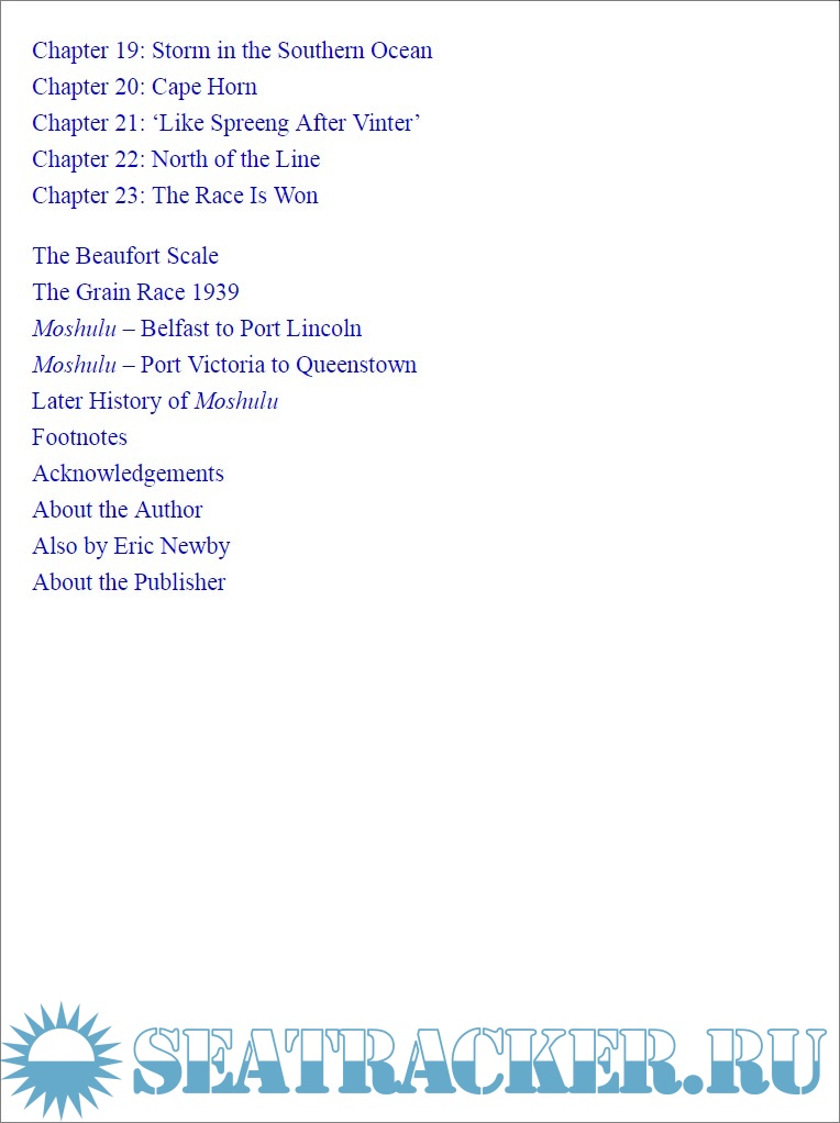 Year: 2014 Language: english Author: Eric Newby Genre: History Publisher: Harper Collins ISBN: 9780007597840 Format: EPUB Quality: eBook Pages count: 179 Description: In 1939, at the age of 18, Eric Newby boarded as an apprentice on the four-masted sailing ship Moshulu for the round trip from Europe to Australia and back, outwards by way of the Cape of Good Hope and round Cape Horn. Moshulu was the largest sailing ship still employed in the transportation of grain from Australia to Europe. Every year from 1921 to 1939, the vessels involved in the grain trade competed to find the shortest and fastest passage home, the so-called 'grain race'. The book is a first-hand account of the last 'grain race' of maritime history, and also a story of a voyage and a personal adventure. The author captured the difficulties, the adventure and the danger of life at sea, the storms, the quarrels and the friendship on board, but over all the book is the witness of the passing of the era of great sail ships.