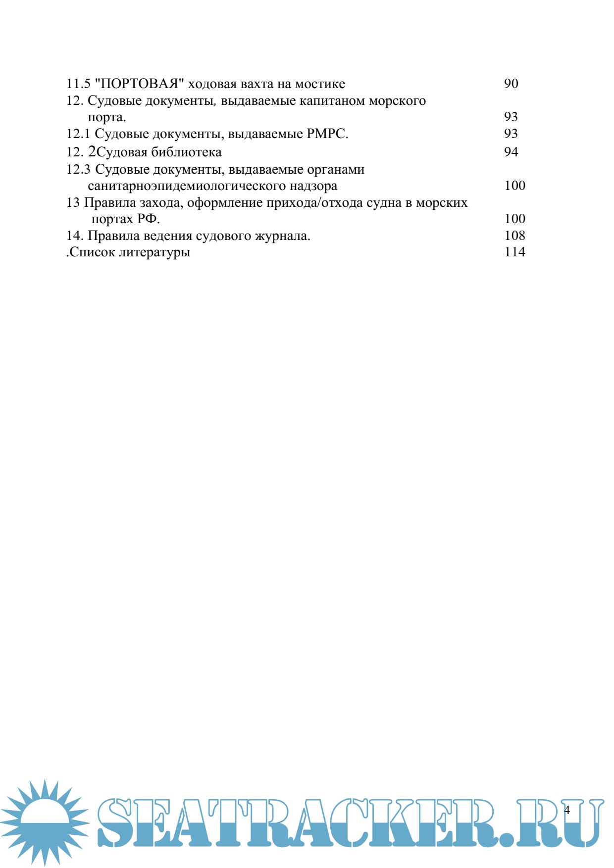 Год выпуска: 2016 Язык: русский Автор: Кузьмин В.Д. Жанр: Курс лекций Издательство: Керченский государственный морской технологический университет Формат: PDF Качество: Изначально компьютерное (eBook) Количество страниц: 115 Описание: Введение. Обязанности судовладельца. Экипаж. Общие принципы организации вахты на мостике. Общая организация штурманской службы. Штурманская работа в рейсе. Обязанности вахтенного помощника капитана. Перечни рекомендуемых действий судоводителей в различных условиях работы судна. Смена вахты на ходу. Особенности организации навигационной вахты при плавании с лоцманом. Вызов капитана на мостик. Варианты ходовой вахты на мостике. Судовые документы, выдаваемые капитаном морского порта. Правила захода, оформление прихода/отхода судна в морских портах РФ. Правила ведения судового журнала. Список литературы.