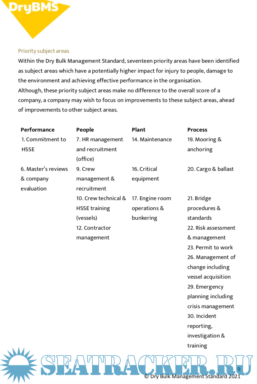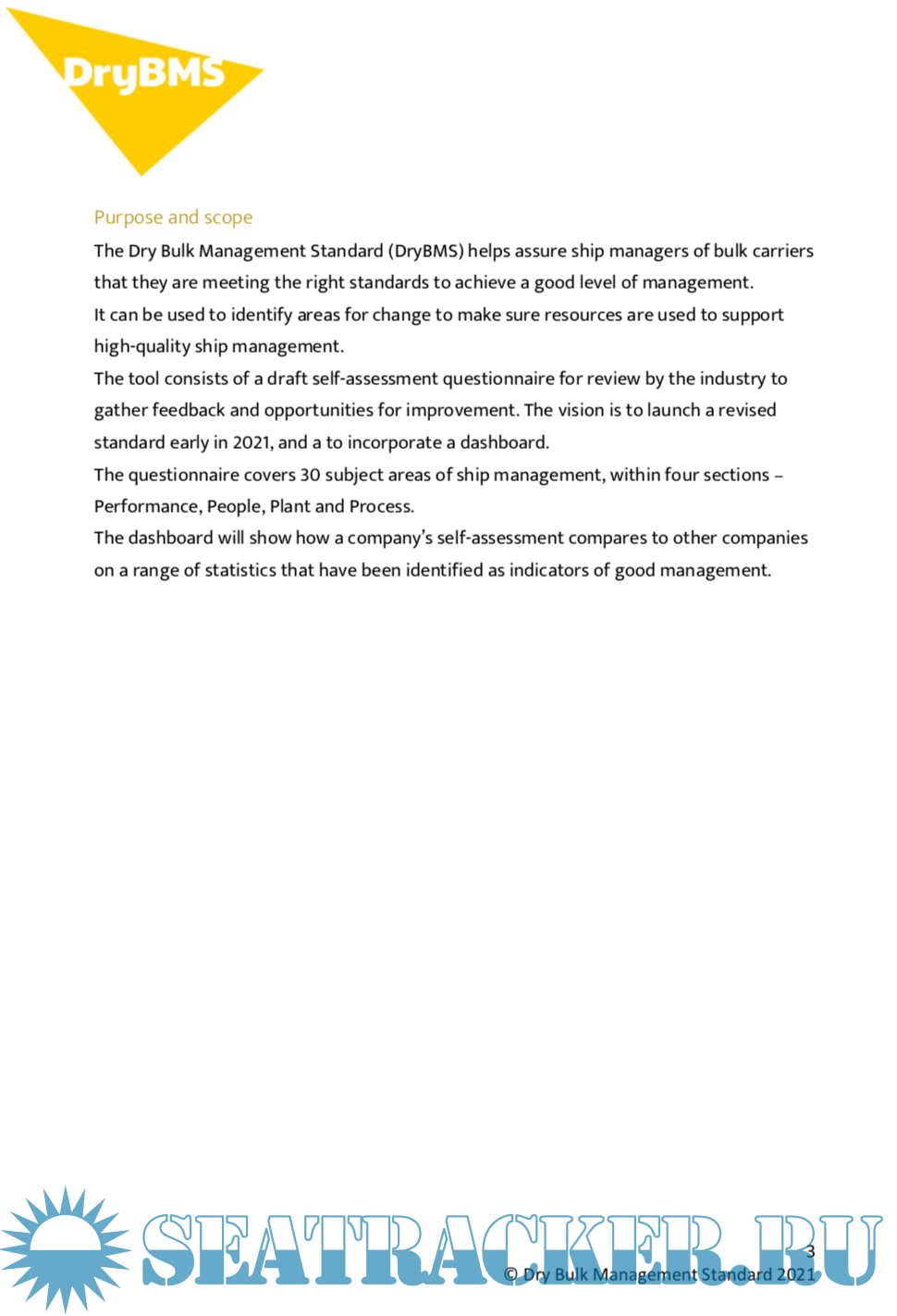 Description: The Dry Bulk Management Standard (DryBMS) helps assure ship managers of bulk carriers that they are meeting the right standards to achieve a good level of management.