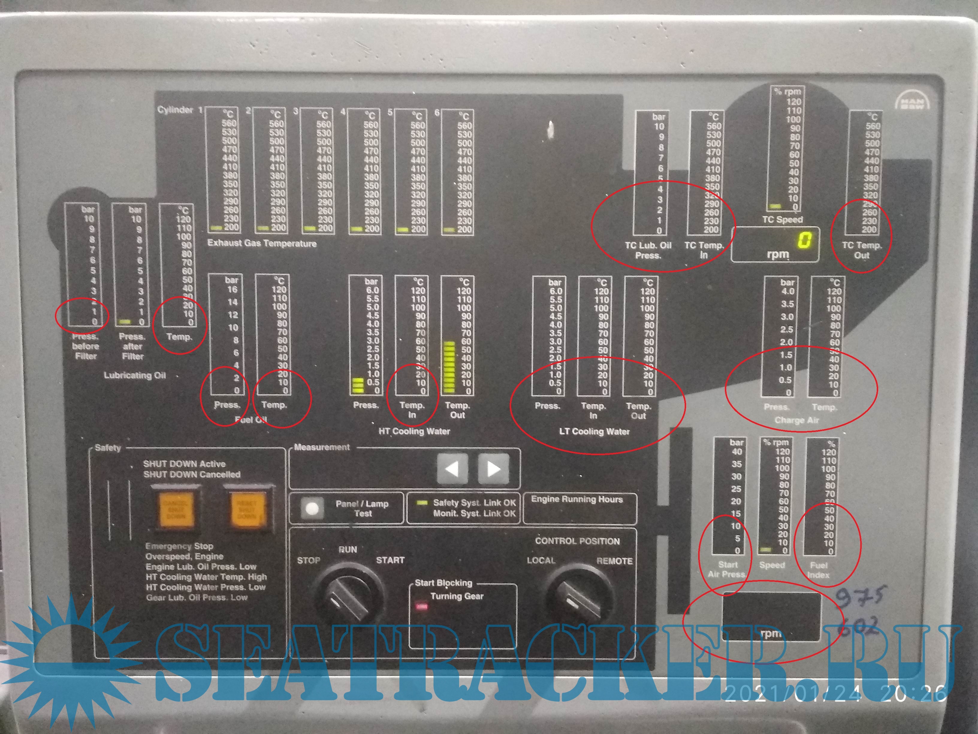 Пускали ГД и внезапно отказала ACM-E monitoring. Часть параметров не индицируется на панели Local control ГД(Lubrication oil before filter, temp. lubrication oil, fuel oil prtess&temp, HT cooling water, LT cooling water, turbocharger oil press&temp, charge air press&temp, start air press, rpm maim engine. На панели в ЦПУ Alphatronic 2000 выдает ошибку Network Time out, Скриншоты и мануалы прилагаю. Помогите разобраться.