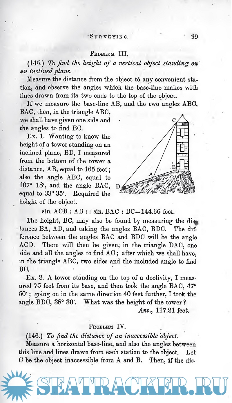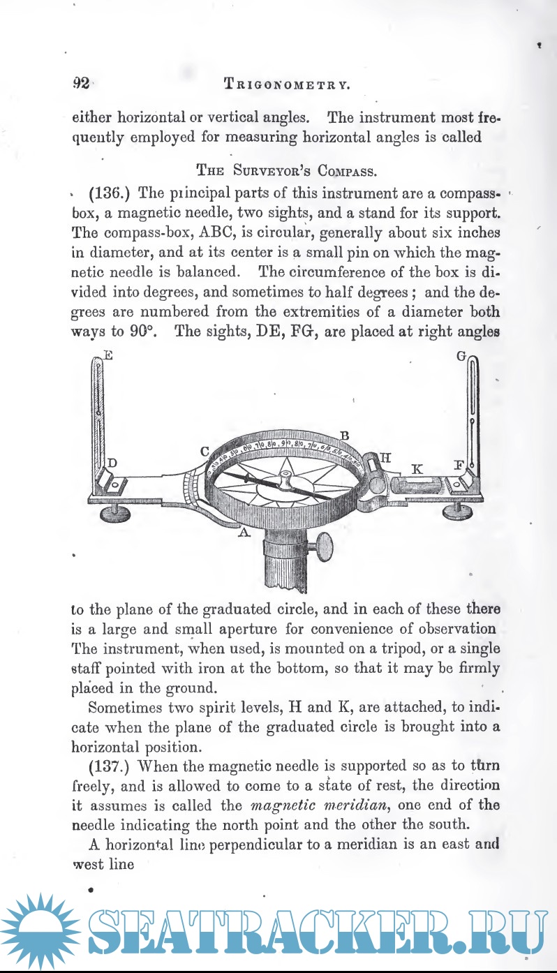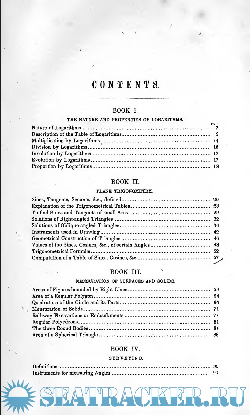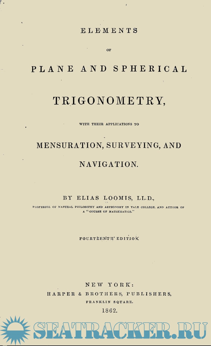 Year: 1862 Language: english Author: Elias Loomis Genre: Manual Publisher: Harper and Brothers Edition: 14th Format: PDF Quality: Scanned pages + text layer Pages count: 202 Description: This manual, designed for colleges and high schools, aims to explain the most important principles of trigonometry and spherical trigonometry, in particular on account to their applications, in surveyng and navigation. With the aim to explain principles and applications in a plain and intelligible way, the most common instruments used in Surveying and Navigation are fully described and illustrated by drawings. Computations are made by the aid of natural numbers, or with logarithms to six places, and many practical examples are worked at the end of the book.