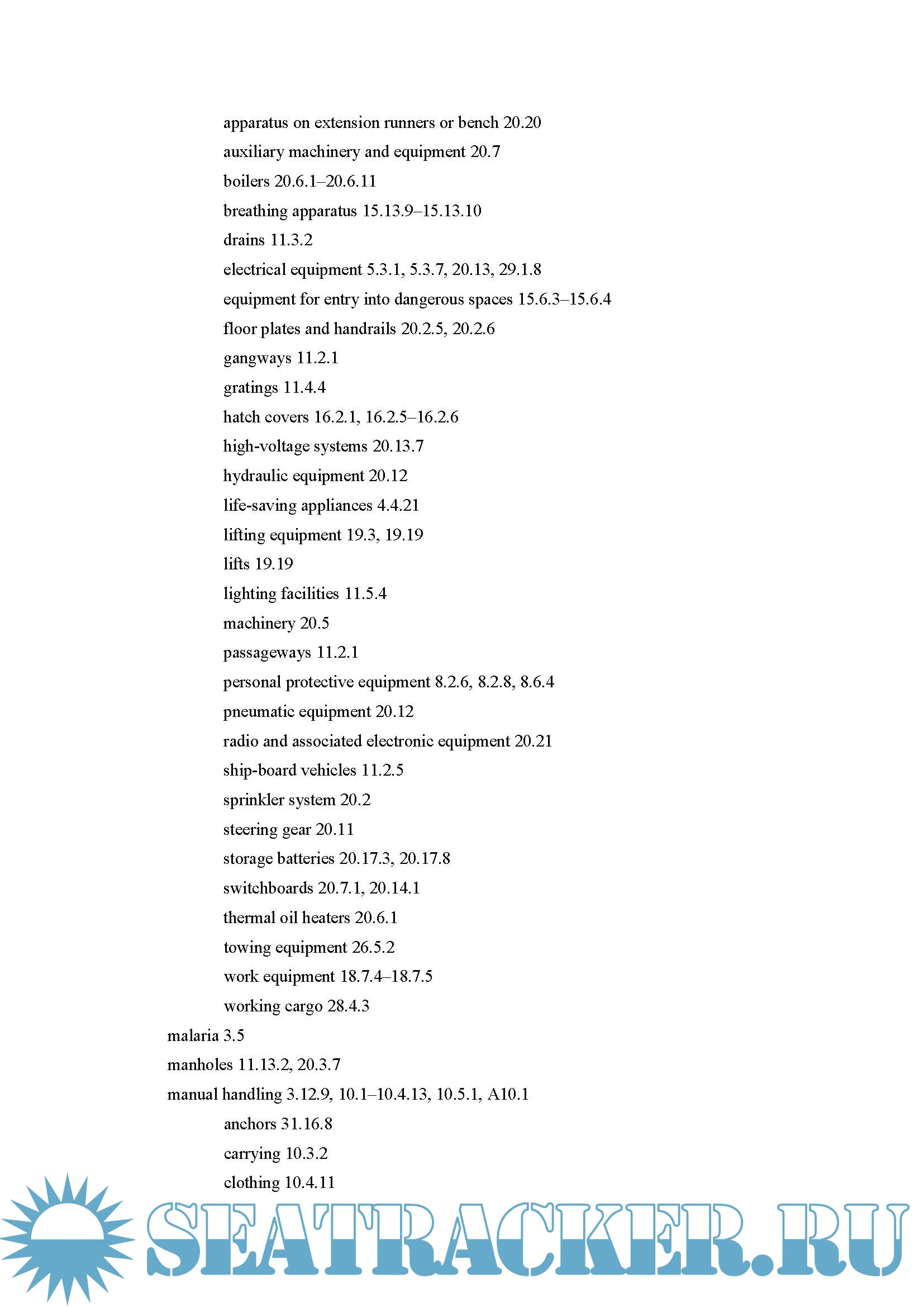 Year: 2020 Language: english Author: MCA Genre: Convention (rules) Format: PDF Quality: eBook Pages count: 543 Description: It is a statutory requirement that seafarers are provided with the information necessary to ensure their health and safety. The MCA considers that on UK ships this means that all those with specific responsibilities for safety should have immediate access to this Code, and that it should be readily available to all seafarers on board, e.g. a copy should be kept in the mess room. It should be provided in appropriate formats (e.g. electronic and hard copy) in sufficient quantity to ensure easy access. The Code should be supplemented by safety manuals, work instructions and other guidance issued by shipping companies for their particular ships, as appropriate. Additional info: Amendment 5 October 2020