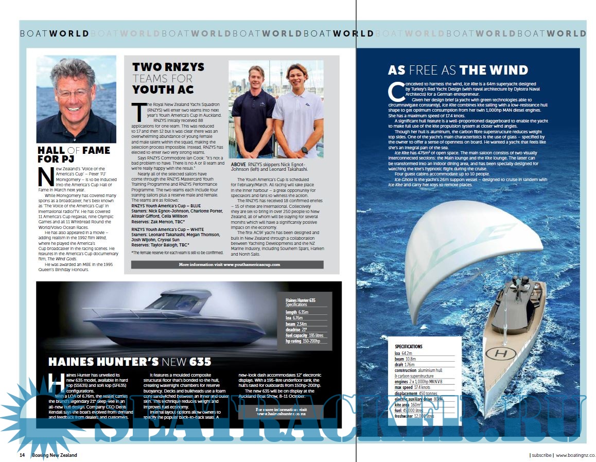 Year: 2020 Language: english Author: Boating New Zealand Genre: Periodical (magazine) Format: PDF Quality: eBook Pages count: 156 Description: Boating New Zealand is NZ’s number one selling and largest boating magazine. Boating New Zealand inspires more boating enthusiasts than any other boating title in New Zealand. Founded in 1986, it is part of the fabric of the boating scene.The magazine brings to its readers reviews of new boats, coverage of technical innovations, boat maintenance advice and cruising adventure stories. Its expert columnists enjoy dedicated followers every month. Our readers represent this country’s boating public from owners and crew of small yachts and powerboats, mid-size cruisers and racers, to owners of luxury yachts and motoryachts.