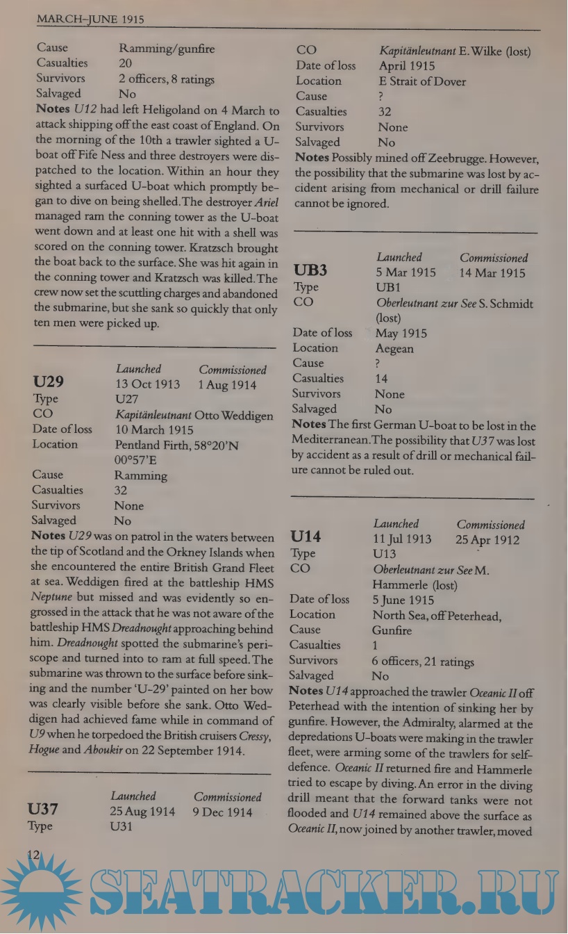 Year: 1999 Language: english Author: Kemp P. Genre: History Publisher: Arms @ Armour Edition: 2nd ISBN: 1-85409-515-3 Format: PDF Quality: Scanned pages Pages count: 292 Description: In both World Wars I and II, the German U-boat was the Allies' scourge, and in the latter conflict it very nearly won the day for the Nazis. Over a thousand of these powerful ships were destroyed in air and seaborne attacks, by surface vessels and submarines, in tough head-to-head encounters, chance meetings, and after extensive chases and hunts. Here is unprecedented detail of these sinkings and obliterations, of casualties on a massive scale, and of a victory hard-won. Additional info: https://seatracker.me/viewtopic.php?t=45125