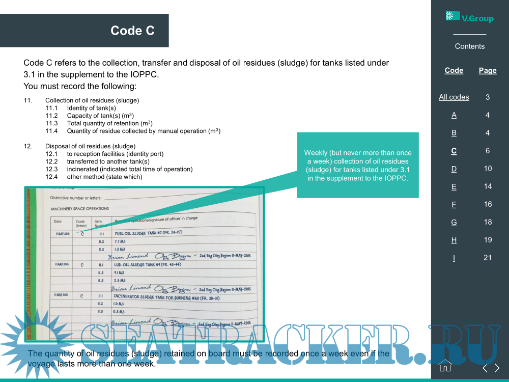 Oil Record Book - Code guide