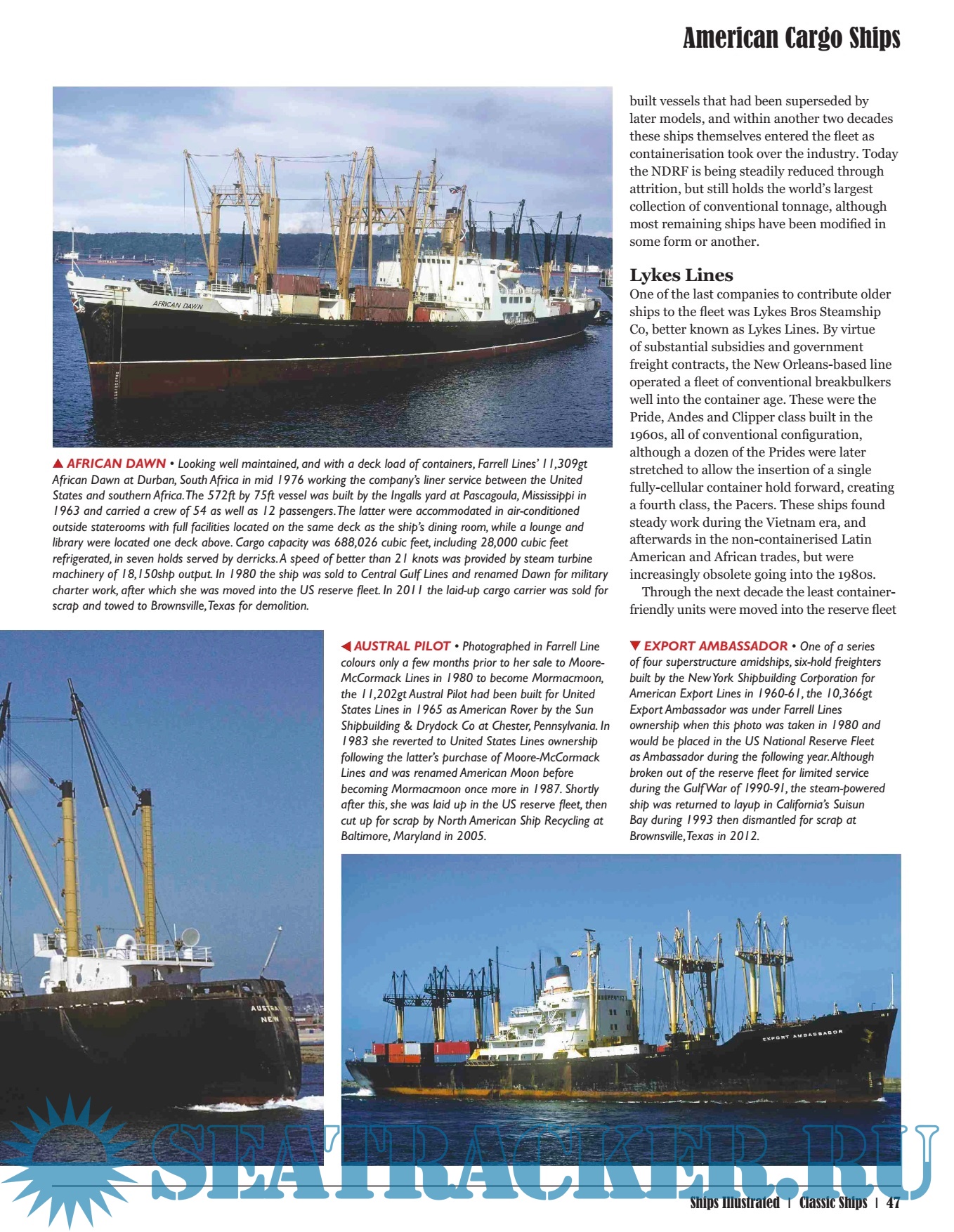 Year: 2015 Language: english Author: Jones T., Shaw J. Genre: History Publisher: Kelsey Publishing ISBN: 1909786756 Format: PDF Quality: Scanned pages Pages count: 100 Description: This book is a compilation of photographs taken by South African photographer Trevor Jones over a period of two decades when the world's shipping industry was witnessing the replacement of the conventional general cargo carrier by container ships and the passenger liner by cruise ships. The book contains photos of British, European and American ships, those from the Rest of the World and those that survive to this day.