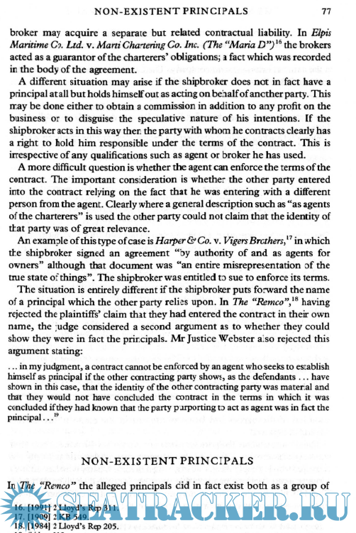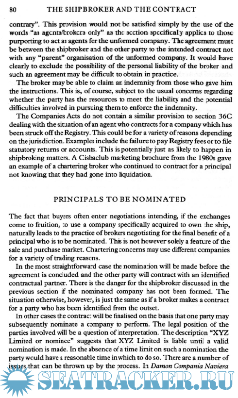 Description: This text provides an explanation of the responsibilities and liabilities of the shipbroker, both in direct contact with principles and as part of a chain of other brokers.