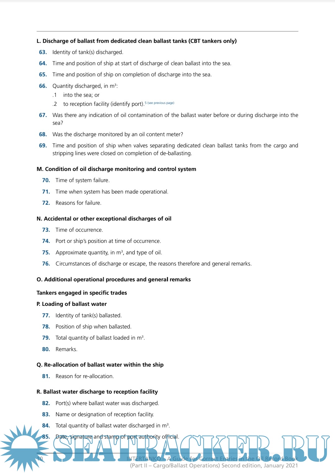 A Guide for Correct Entries in the Oil Record Book (Part II - Cargo/Ballast Operations)