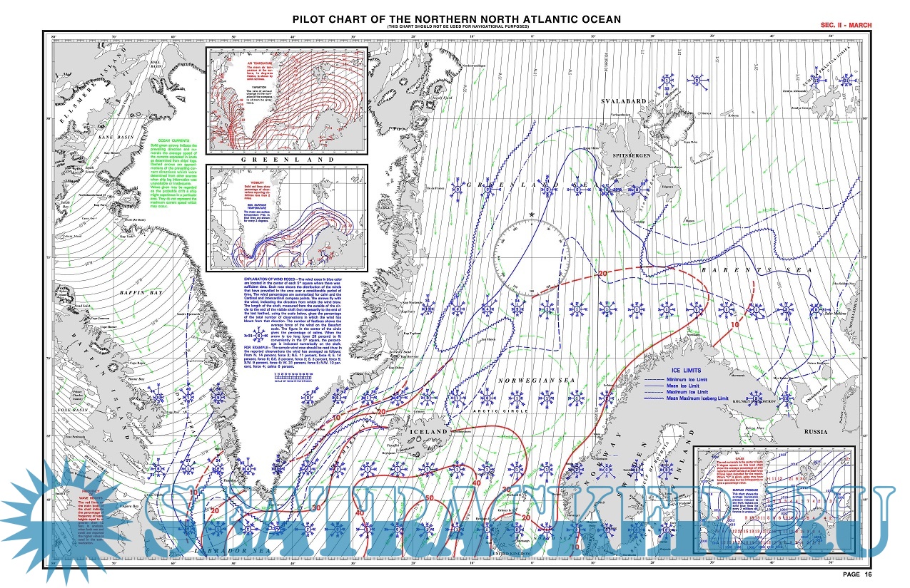 Year: 201? Language: english Author: National Geospatial-Intelligence Agency Genre: Guide Format: PDF Quality: eBook Pages count: >70 Description: Pilot Charts depict averages in prevailing winds and currents, air and sea temperatures, wave heights, ice limits, visibility, barometric pressure, and weather conditions at different times of the year. The information used to compile these averages was obtained from oceanographic and meteorologic observations over many decades during the late 18th and 19th centuries. The Atlas of Pilot Charts set is comprised of five volumes, each covering a specific geographic region. Each volume is an atlas of twelve pilot charts, each depicting the observed conditions for a particular month of any given year. The charts are intended to aid the navigator in selecting the fastest and safest routes with regards to the expected weather and ocean conditions. The charts are not intended to be used for navigation. .