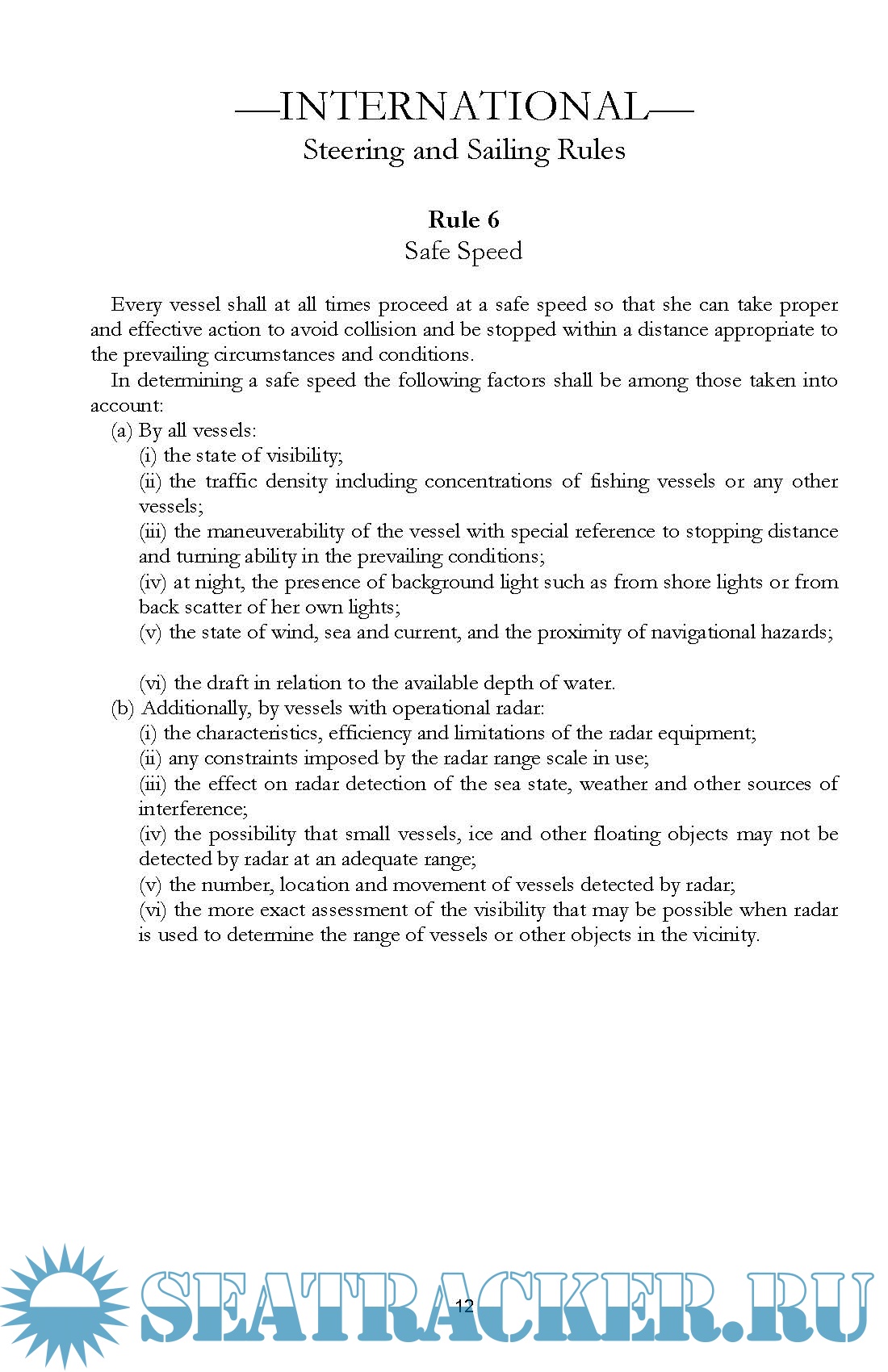 flags of states ratifying the treaty are bound to the Rules. The United States has ratified this treaty and all United States flag vessels must