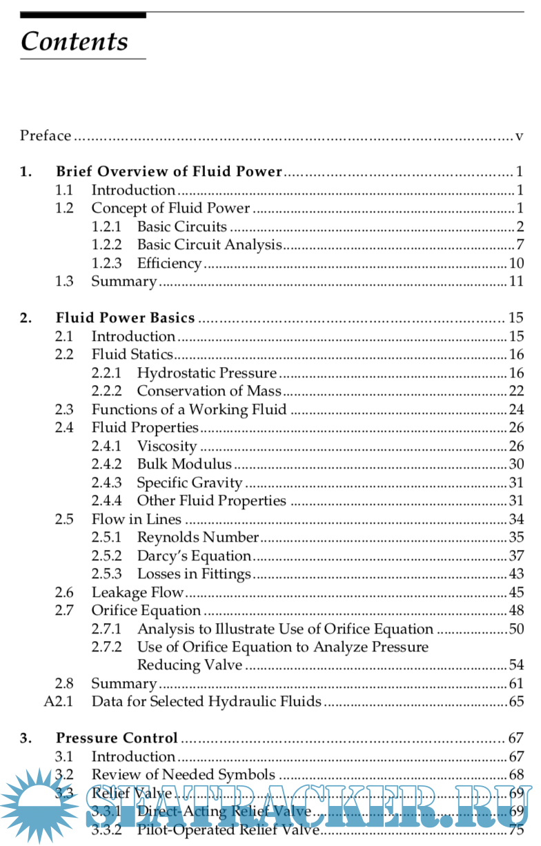 Year: 2002 Language: english Author: John S. Cundiff Genre: Textbook Publisher: CRC Press LLC ISBN: 0-8493-0924-7 Format: PDF Quality: eBook Pages count: 556 Description: This book was written as text for a one-semester course in fluid power. It is expected that the course will be taught to senior-status engineering students. In most engineering curricula, fluid power is an elective course. Students interested in machine design (particularly those with a controls focus) make room in their course of study for a single technical elective in fluid power. This elective course must give them the basic foundation for the subject and give as much design experience as possible. Students need to feel confident that they can actually go out and “do something” with fluid power.