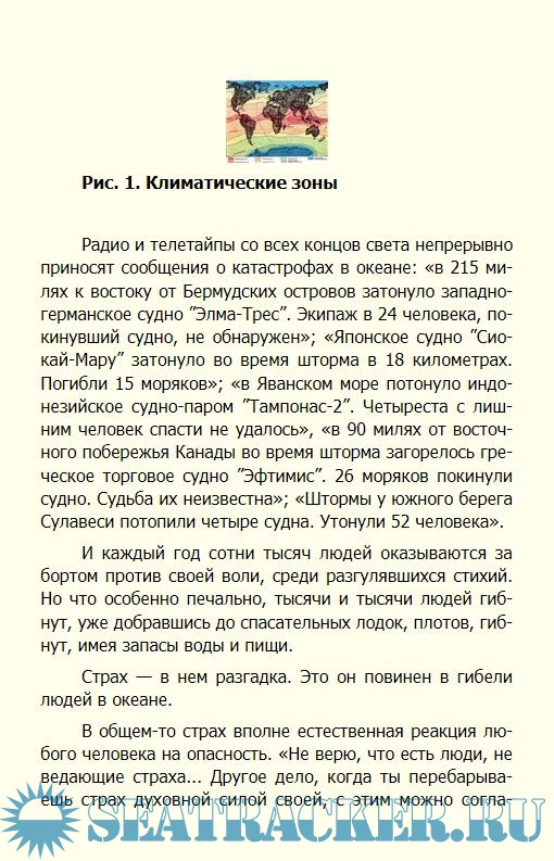 Содержание Предисловие Введение 1. ЧЕЛОВЕК В УСЛОВИЯХ АВТОНОМНОГО СУЩЕСТВОВАНИЯ Ориентирование Аварийный запас Средства связи Средства сигнализации Питание в условиях автономного существования Аварийный запас пищи Водообеспечение Медицинская помощь в условиях автономного существования Аварийная медицинская аптечка 2. АРКТИКА Земля Франца-Иосифа Новая земля и остров Вайгач Северная земля Новосибирские острова Остров Врангеля Аляска Зарубежная Арктика Арктическая Канада Гренландия Ян-майен Шпицберген Человек в условиях автономного существования в Арктике Связь и сигнализация Энерготраты организма в Арктике и обеспечение питанием в условиях автономного существования Некоторые вопросы водно-солевого обмена и водообеспечение в Арктике Переход в Арктике Профилактика и лечение заболеваний 3. ТАЙГА Человек в условиях автономного существования в тайге Обеспечение питанием Переход в тайге Профилактика и лечение заболеваний 4. ПУСТЫНЯ Человек в условиях автономного существования в пустыне Тепловое состояние и водно-солевой обмен при высоких температурах окружающей среды Водообеспечение в пустыне Питание в условиях высоких температур Профилактика и лечение заболеваний 5. ДЖУНГЛИ Человек в условиях автономного существования в джунглях Некоторые вопросы теплового и водно-солевого обмена организма в тропиках Водообеспечение в джунглях Питание в джунглях Переход в джунглях Профилактика и лечение заболеваний 6. ОКЕАН Человек в условиях автономного плавания на спасательных плавсредствах Сигнализация и связь Автономное плавание в океане Водообеспечение в океане Выживание в холодной воде Питание в условиях автономного плавания Укачивание Профилактика и лечение заболеваний Укачивание Ядовитые животные Ядовитые медузы Морские змеи Ядовитые рыбы Ядовитые моллюски Профилактика и лечение Хищные морские животные Оказание помощи при нападении акул Барракуды и мурены Заключение