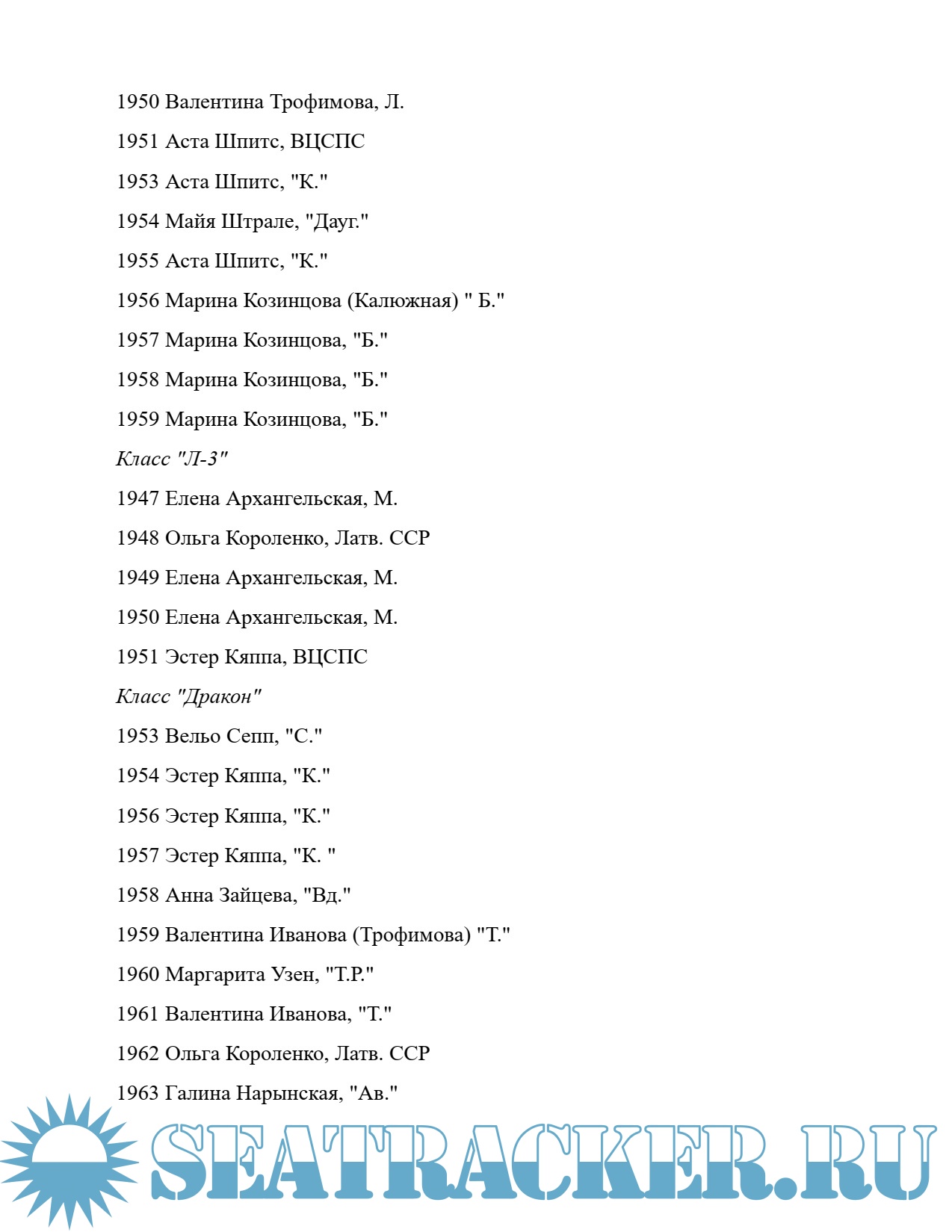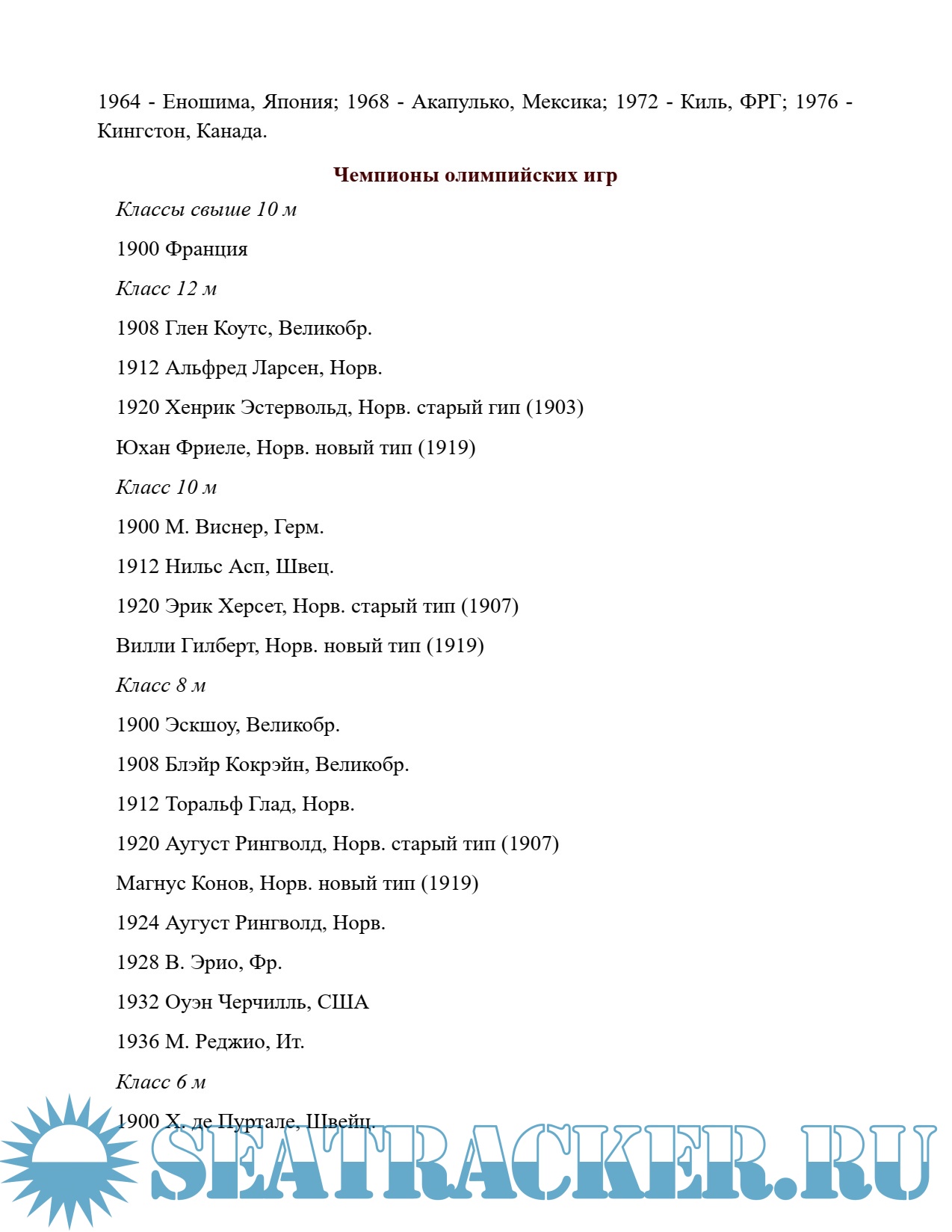 Описание: Список чемпионов СССР по парусному спорту до 1976 года