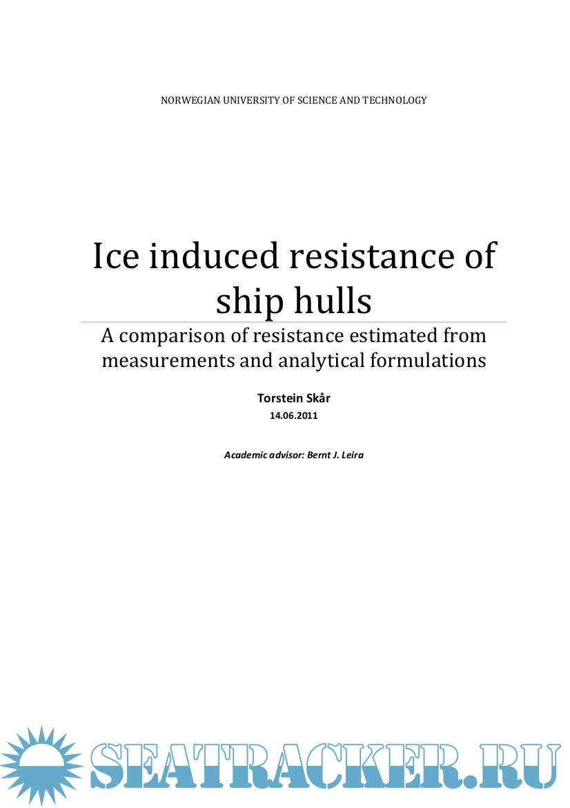 Year: 2011 Language: english Author: Torstein Skår Genre: Research papers Publisher: Norwegian University Of Science Aand Technology Edition: 14.06.2011 Format: PDF Quality: eBook Pages count: 126 Description: Due to global warming and hydrocarbon exploration in the Arctic areas, there is an increasing maritime activity in ice infested waters. Today one can with good accuracy predict if a vessel will be able to survive an encounter with ice of a given thickness, but the knowledge is not good enough to predict the increased fuel cost for ice navigation. This thesis has investigated the validity of two analytical formulations for ice resistance in Arctic areas. The formulations are based on full-scale ice trials in the Finnish-Swedish waters, which have lower salinity and warmer climate than the Arctic areas. This is done by comparing the resistance estimated from onboard measurements of vessel speed, ice thickness and engine power with the estimates from the analytical formulations. The ratio between the two is investigated using statistical tools. While most of the data have too much variation for any conclusions to be made, some time sequences without large variation in the resistance has been identified. Analysis from these sequences indicate that the formulation presented by Riska et al. (1997) appears to be able to describe the speed dependency of ice resistance in the Arctic, but is inaccurate when describing the ice thickness dependence. The formulation presented by Lindqvist (1989) is found to be inaccurate when describing both ice thickness and speed dependency. It is unclear whether the source of inaccuracy comes from incorrect ice property values or if the formulations have been used outside their area of application (both are based on ice trials in the Baltic Sea).